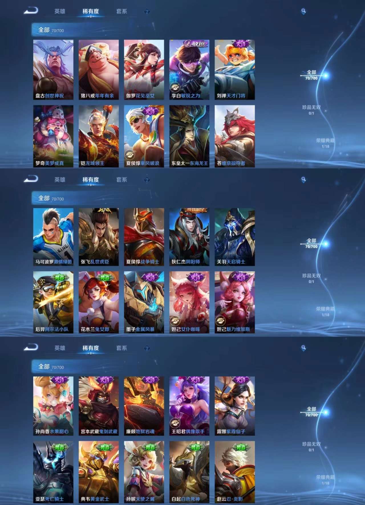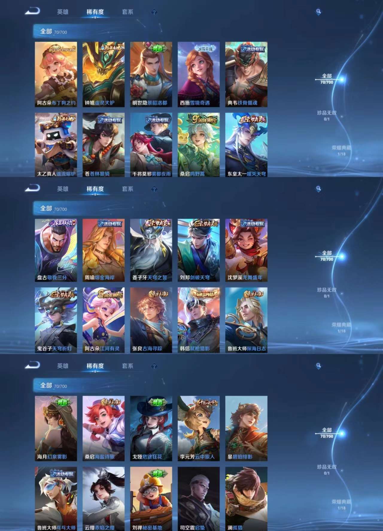 AQY357可二次太阳号V3-永恒钻石II-114英雄-70皮肤-1典藏-0无双-0珍品传说-1传说-14史诗
