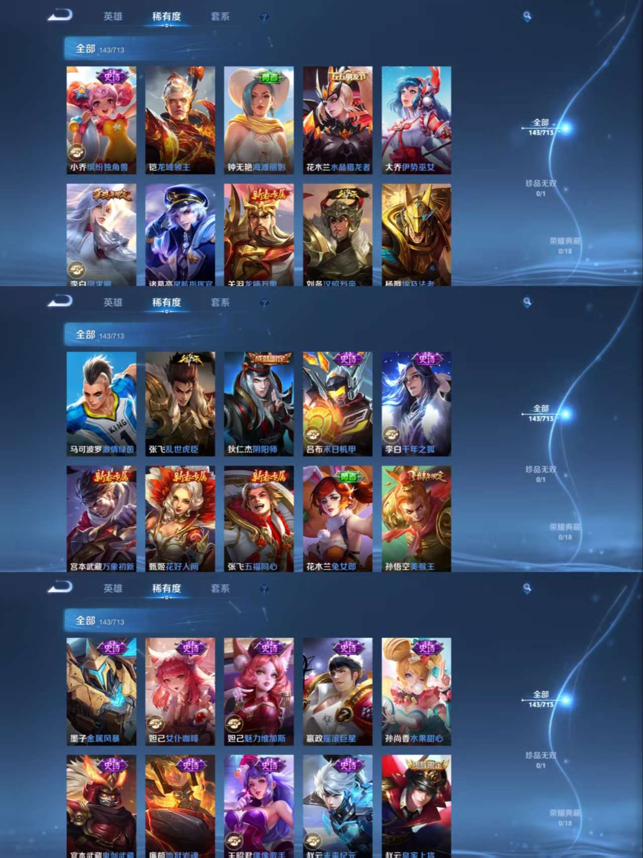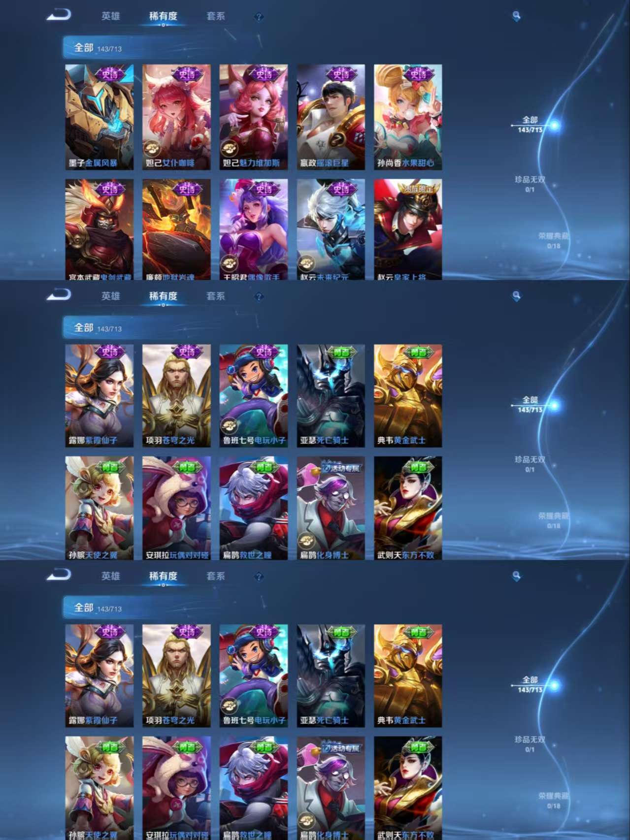 AQY486可二次-V5-尊贵铂金I-123英雄-143皮肤-0典藏-0无双-0珍品传说-2传说-33史诗
