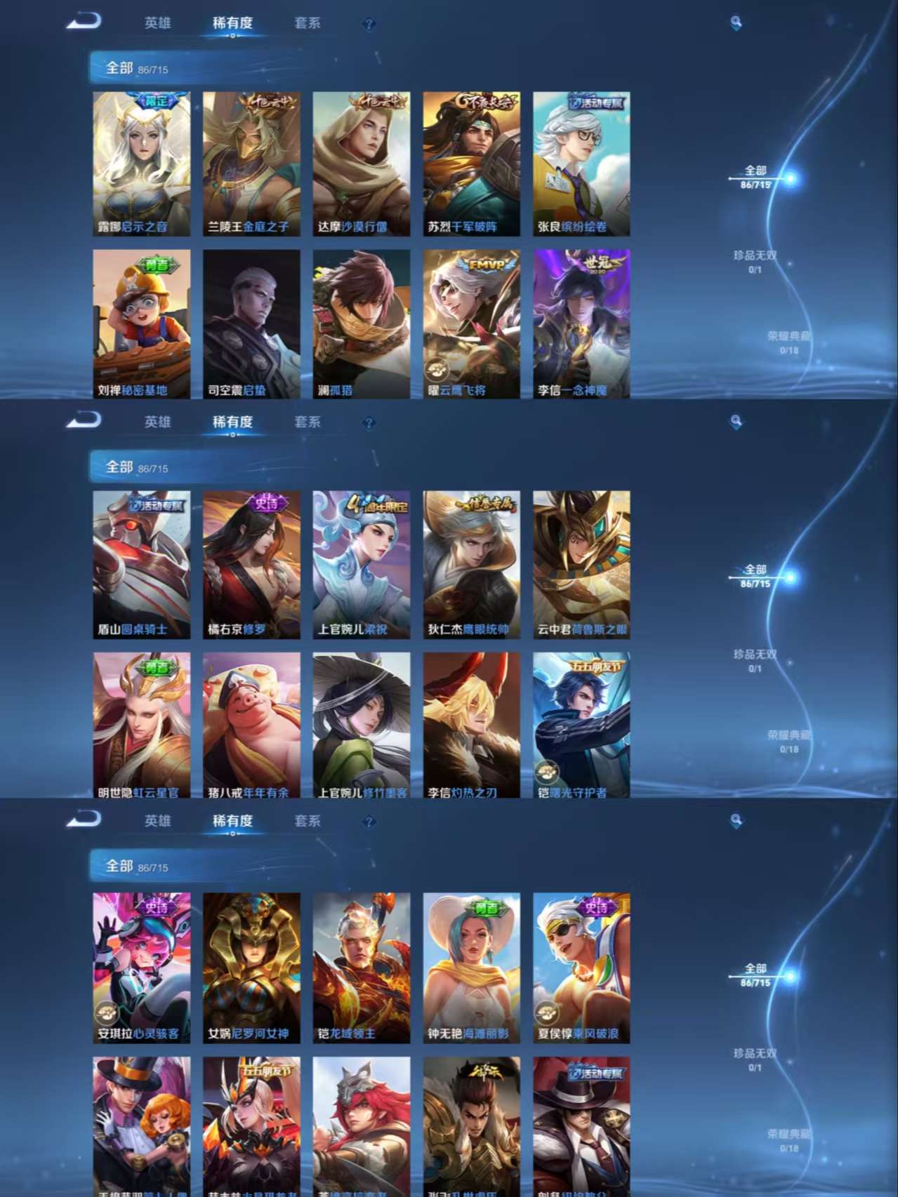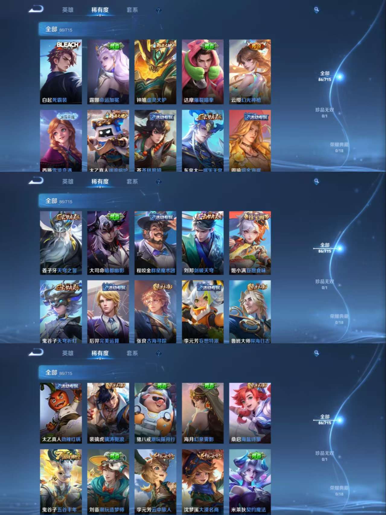 AQY515可二次-V5-永恒钻石V-109英雄-86皮肤-0典藏-0无双-0珍品传说-4传说-16史诗