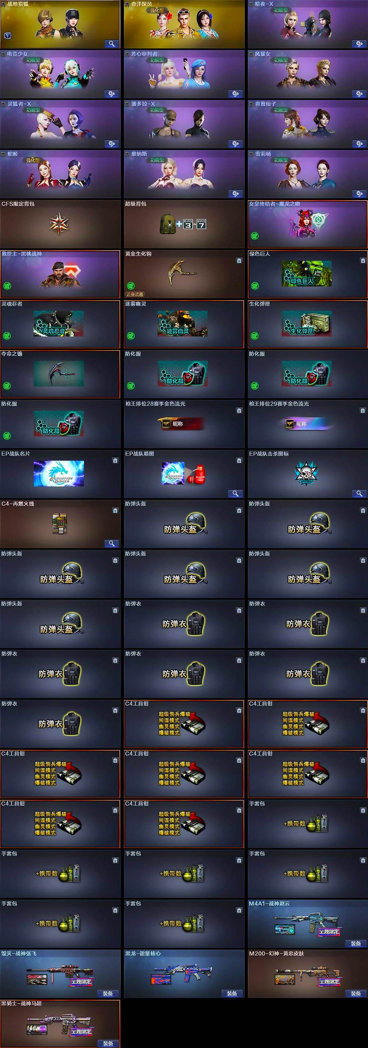 【角色】:战地猎狐,奇洋探员,暗夜-X,电竞少女,芳心审判者,风暴女,0号玩家,灵狐者-X,潘多拉-X,青霞仙子,蛇姬,维纳斯,雪莉杨