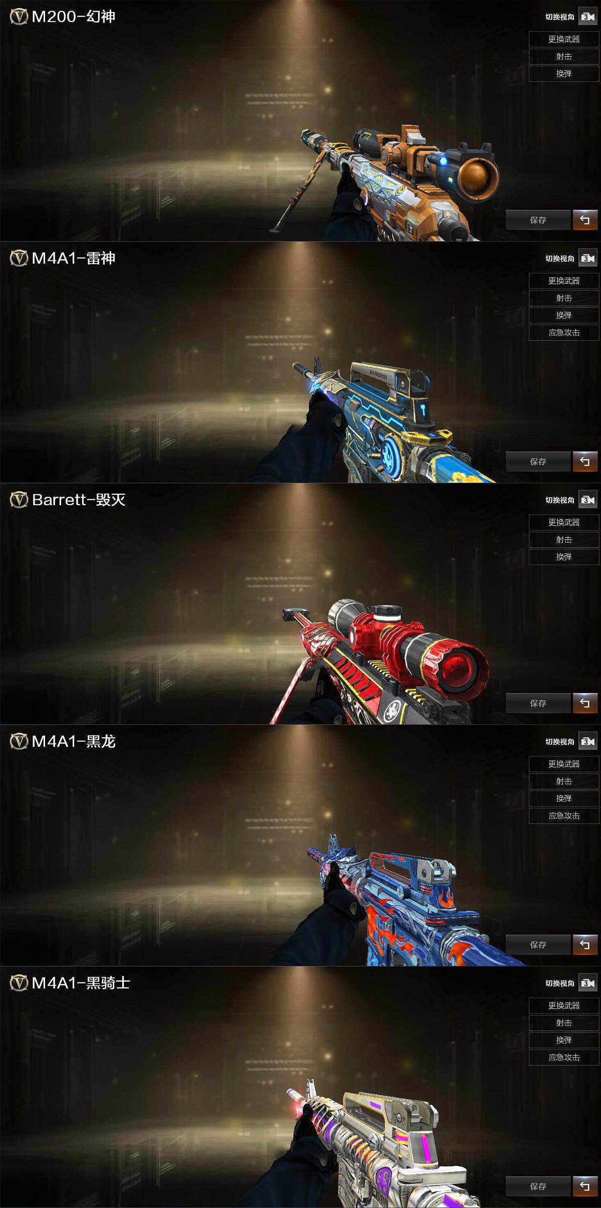 【皮肤】:M200-幻神-黄忠皮肤,M4A1-战神赵云,毁灭-战神张飞,黑龙-能量核心,黑骑士-战神马超