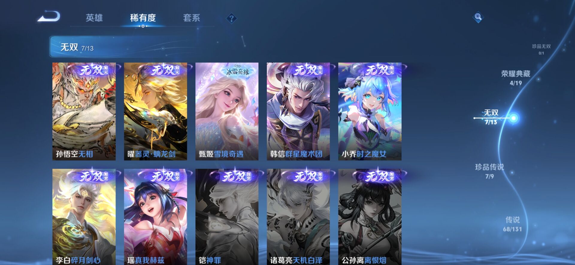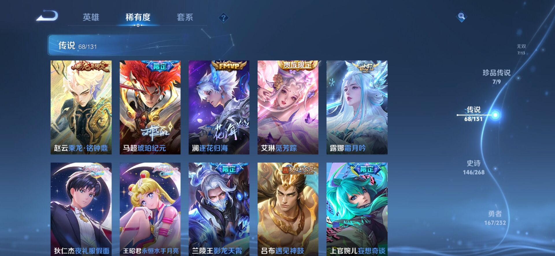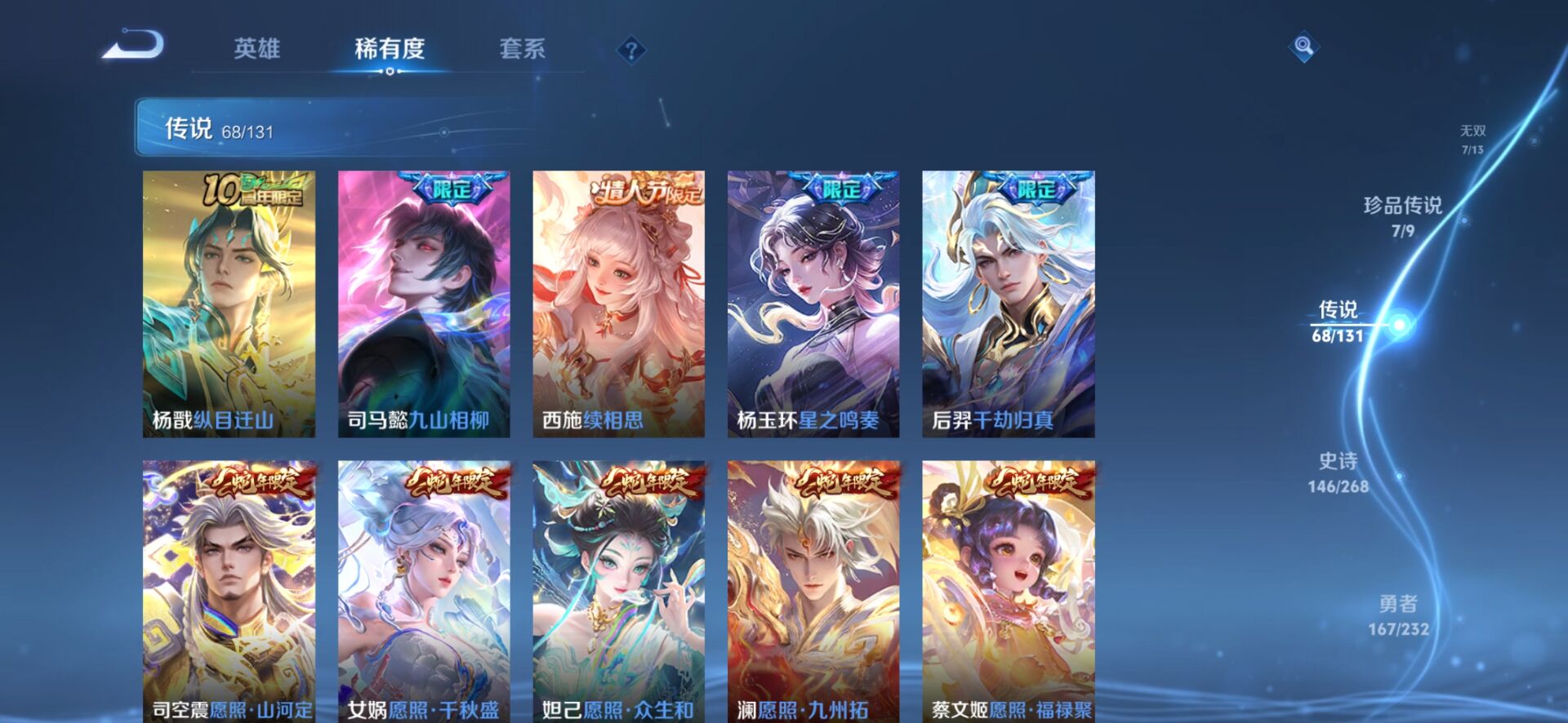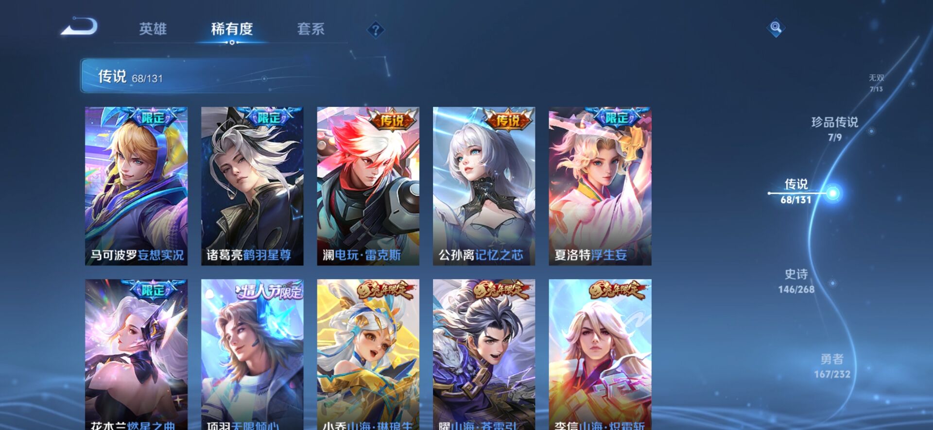 低价出历史大国标白起 小国标李信夏洛特花木兰马超关羽 10个万战顶级战力一手号 对抗路87段 打野54 4典藏 7无双 7珍品传说 68传说