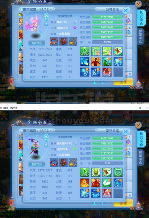 (140普陀/女)花好月圆/赠送邮箱/一年换绑/有双重 1件14段4件13段1件12段,特技装,满魂内丹神兽+日常宝宝完成购