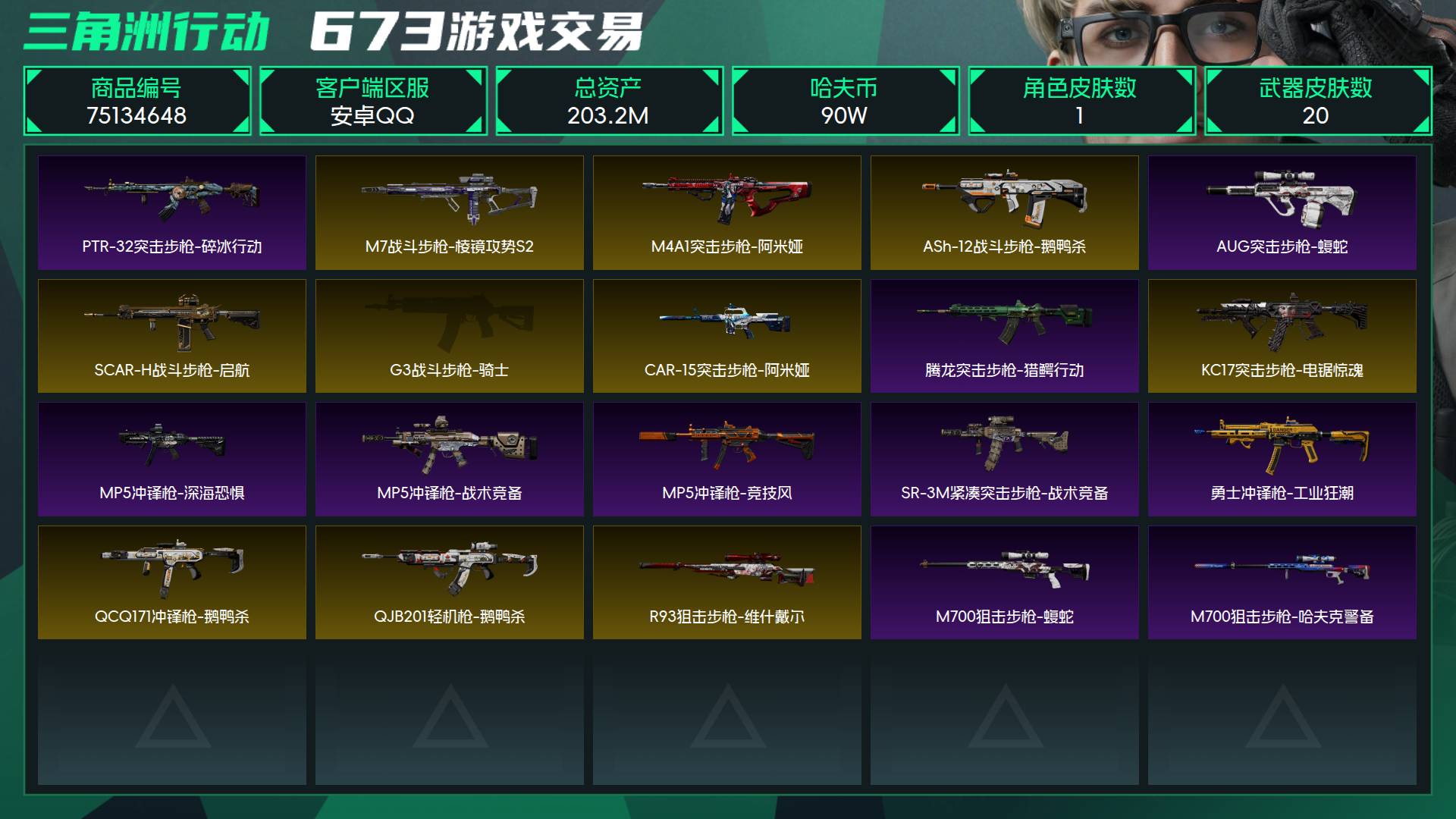 烽火段位黑鹰2 战场段位上等兵2 总资产203.2M 哈夫币90W 干员1 挂饰10 近战1 枪械20 载具7