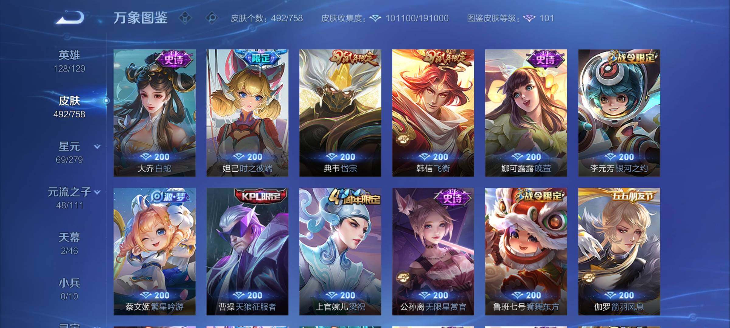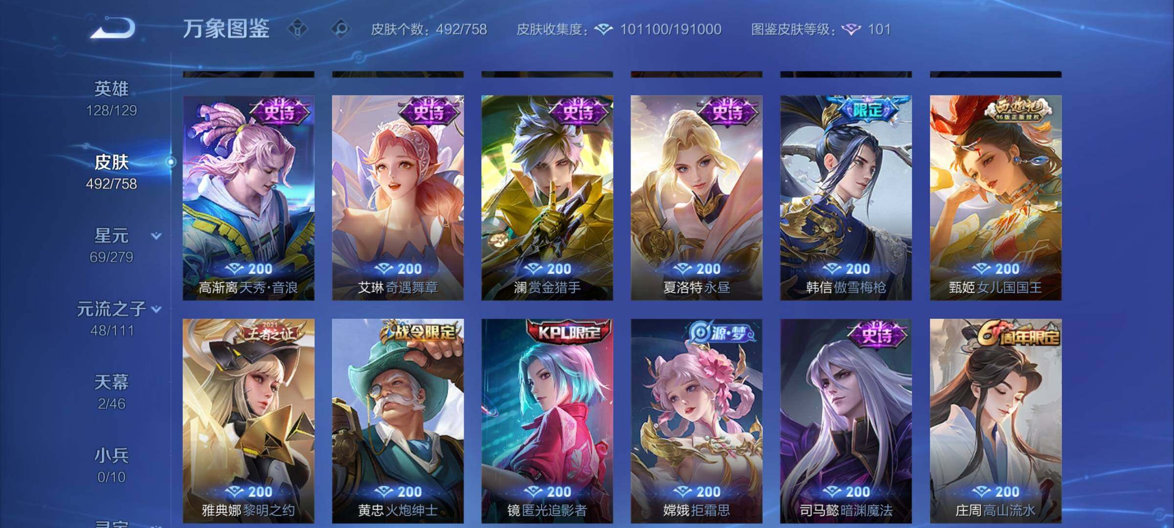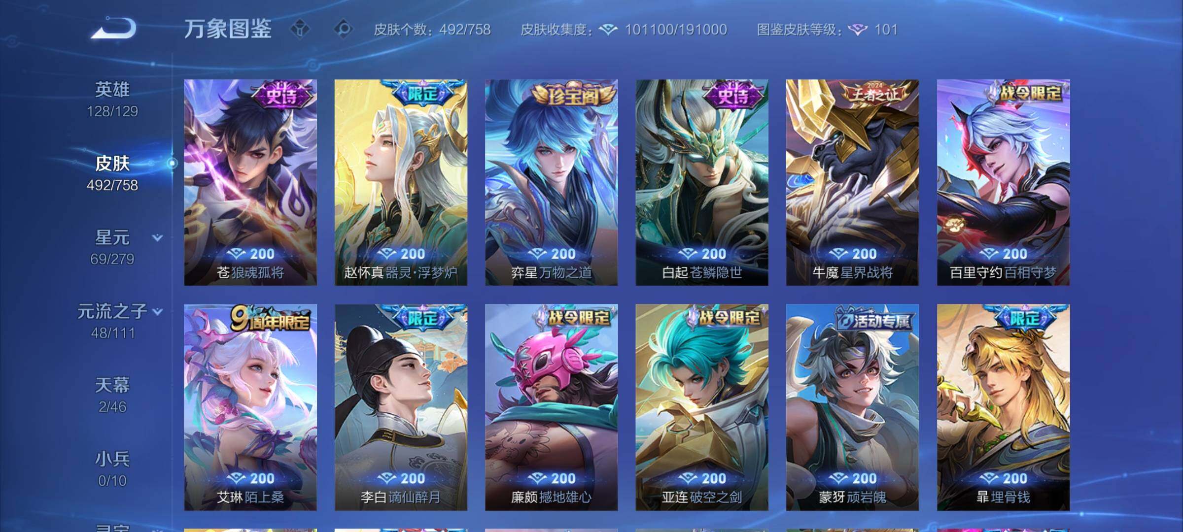 /可换绑【V10精品号 李白全皮 7典藏 6无双 怪盗基德 多传说限定质量号】190戳戳 5星传说 2天幕 32按键 23王者印记 五级铭文200 可二次BX3154 安卓Q-V10-493皮肤-7典藏皮肤-1典藏英雄-6无双-1珍品传说-70传说-159史诗【英雄全皮】:元歌全皮,李白全皮,达摩全皮,刘邦全皮,娜可露露全皮,苍全皮,苏烈全皮,李信全皮,猪八戒全皮,曜