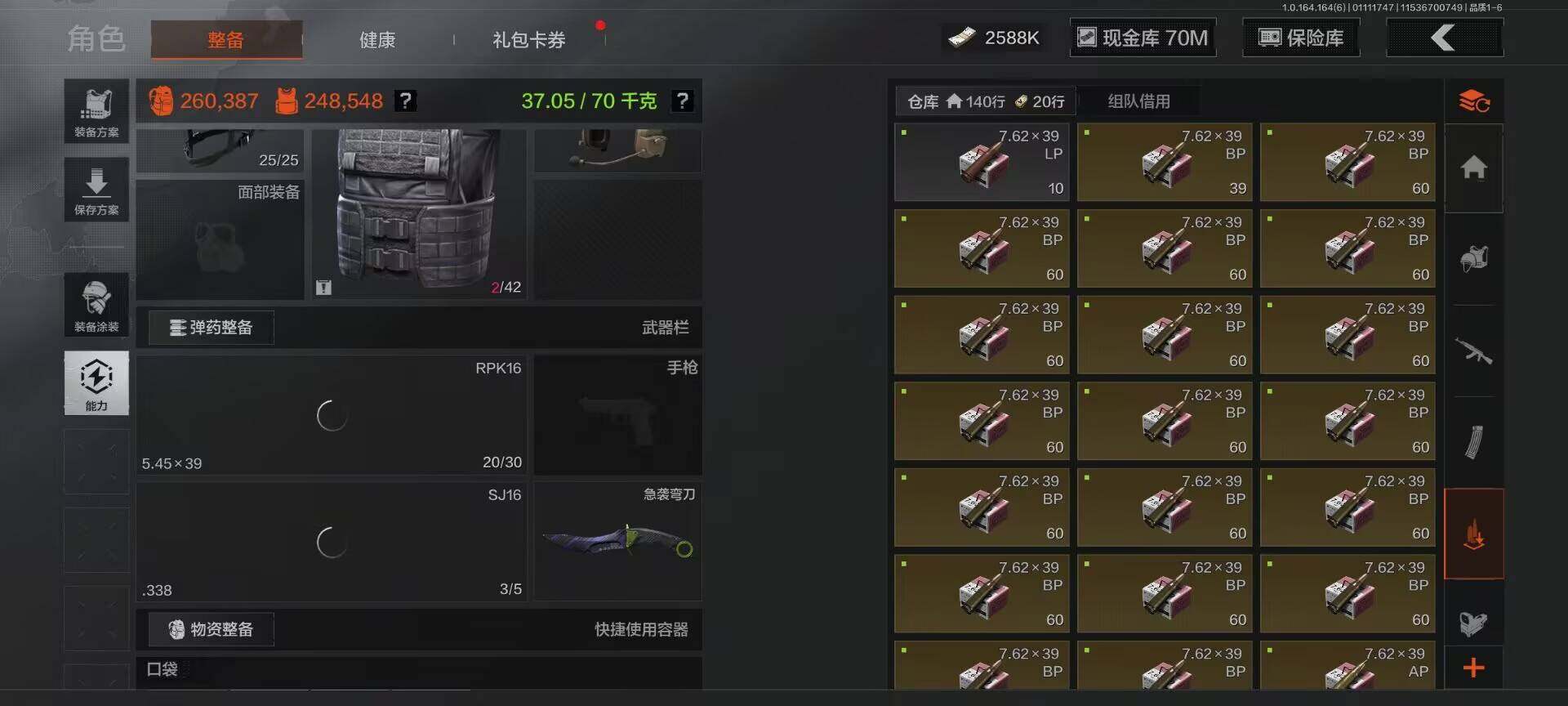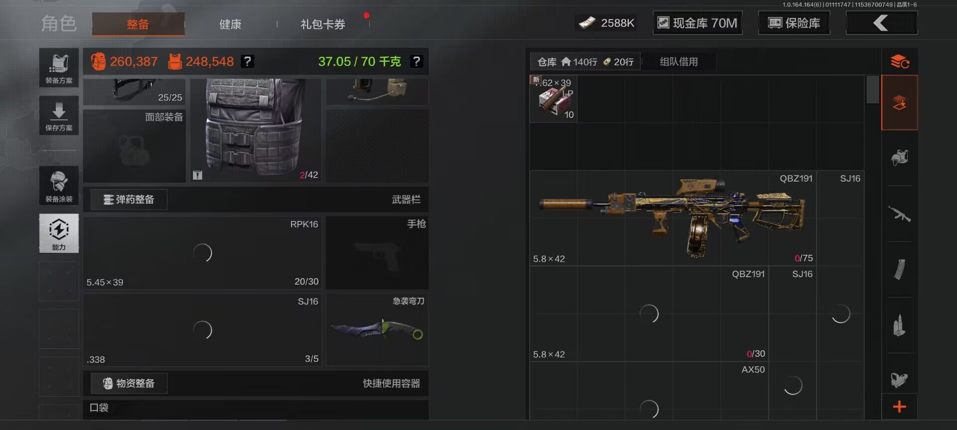 【AQZG949】等级:30/段位:暗区传说/仓库价值(百万):80.3/柯恩币:70000000/急袭弯刀/精英指虎/百炼恒常/脉冲马克西姆