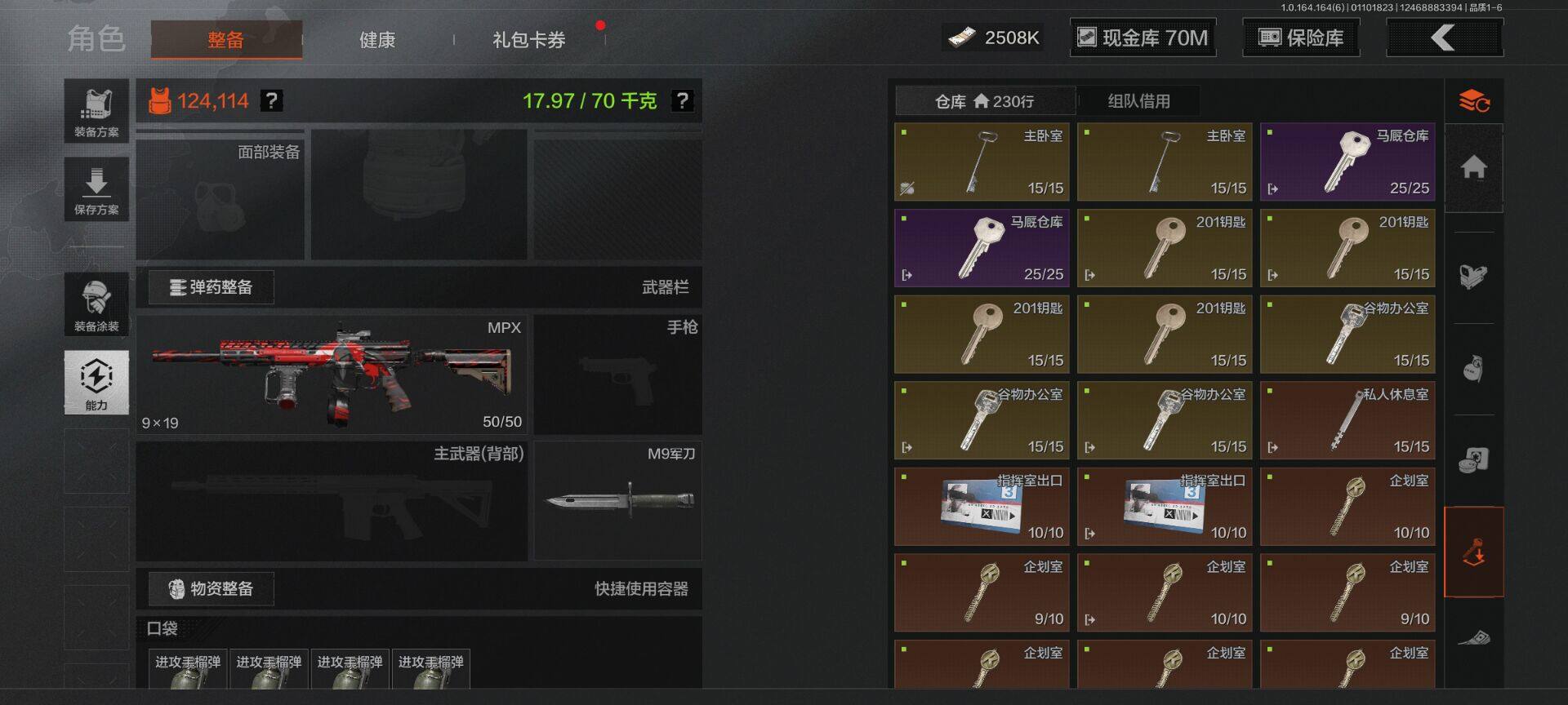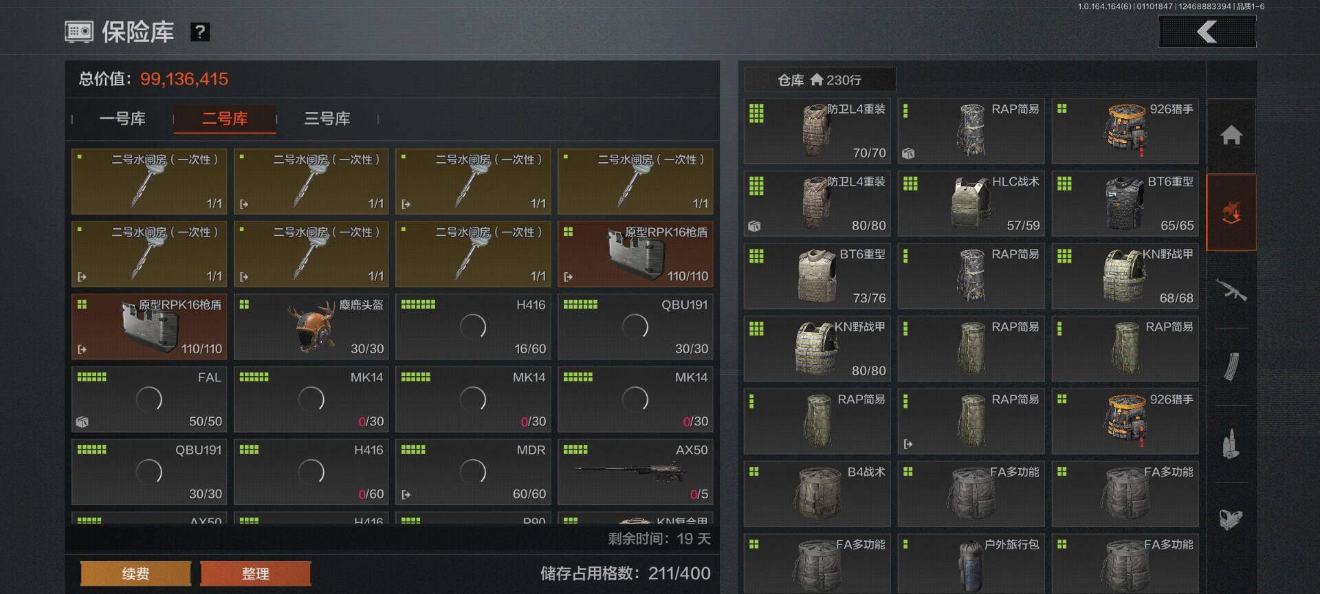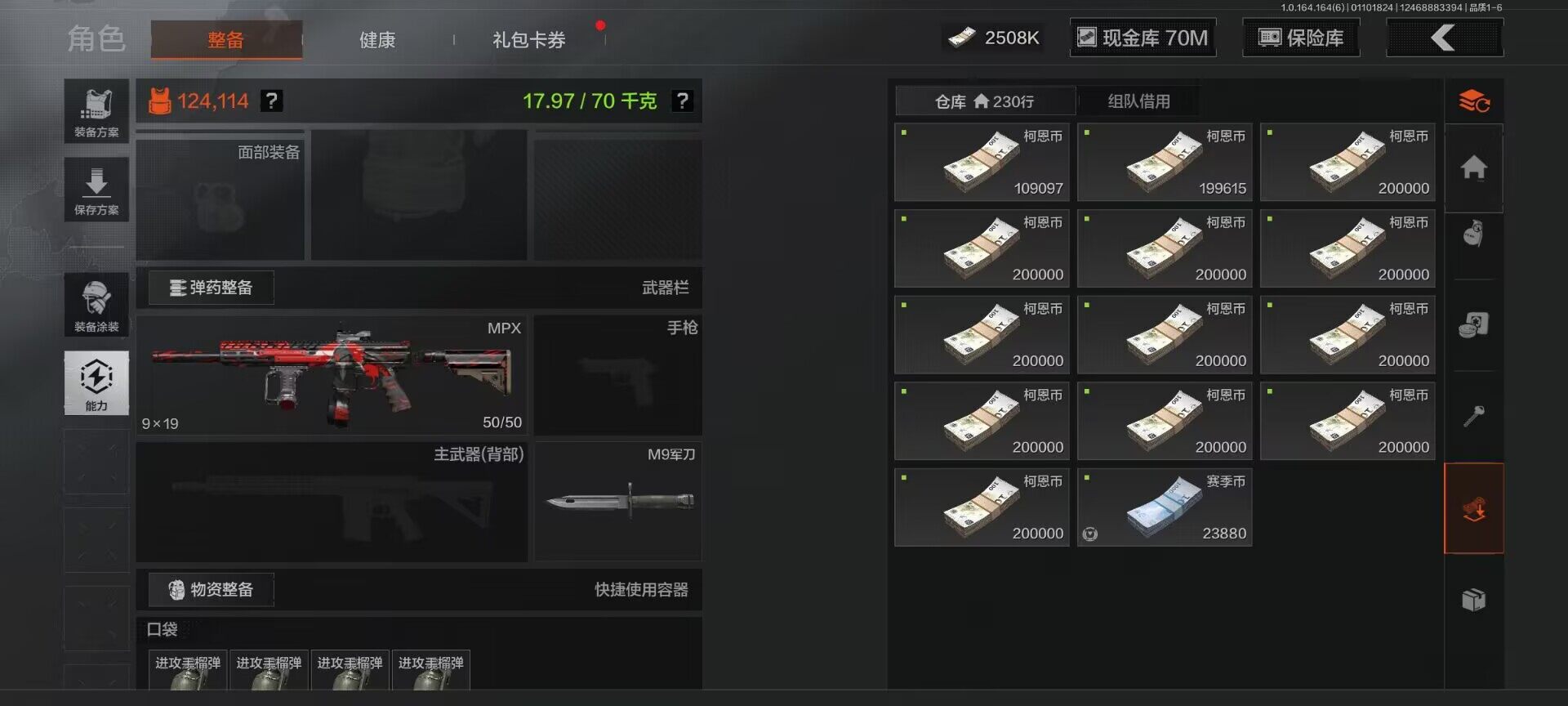 仓库价值(百万):181.4/柯恩币:70000000/来战开山刀