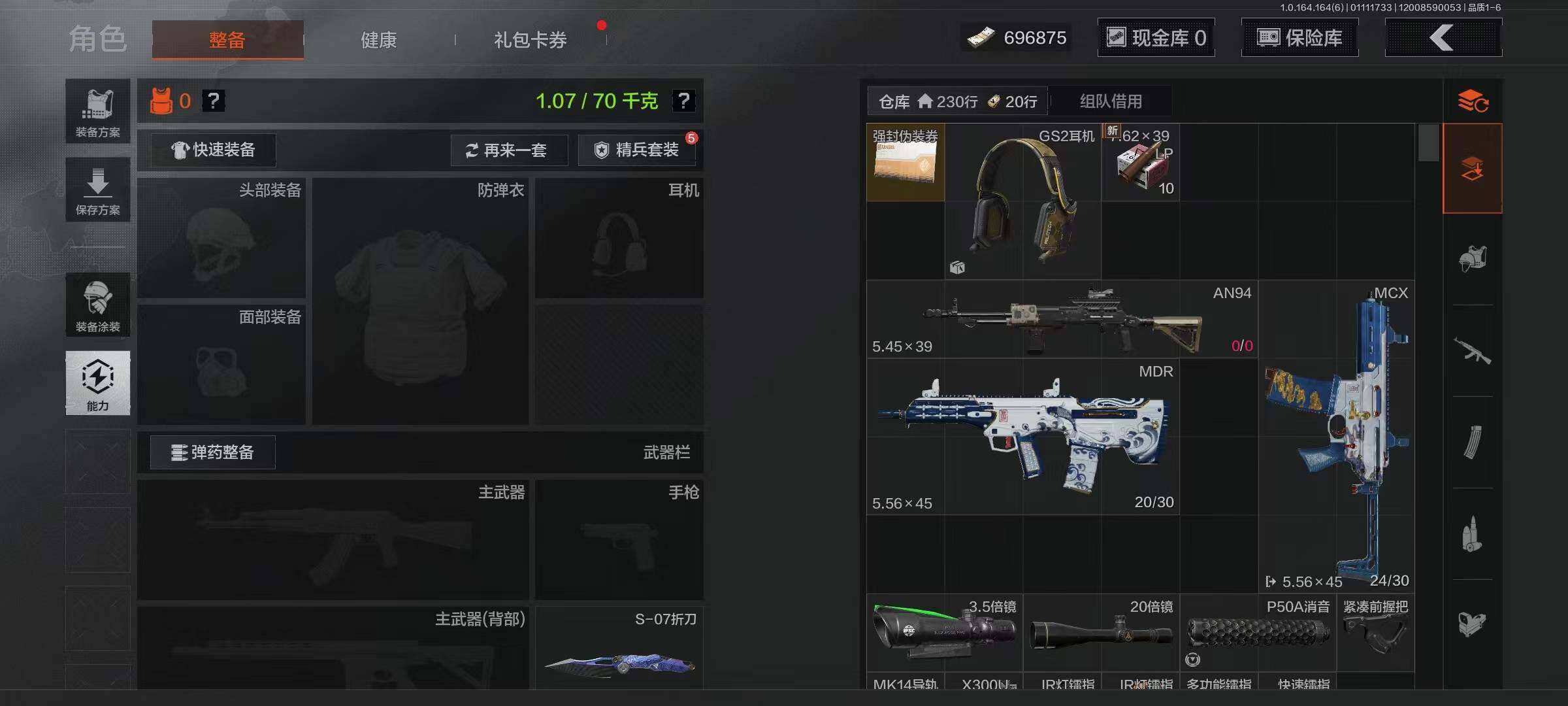 【AQQH265】段位:暗区传说/仓库价值(百万):1/NOCs-7折刀/深潜行者II/冥河