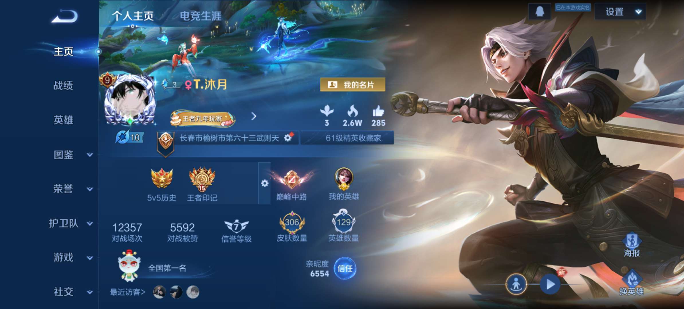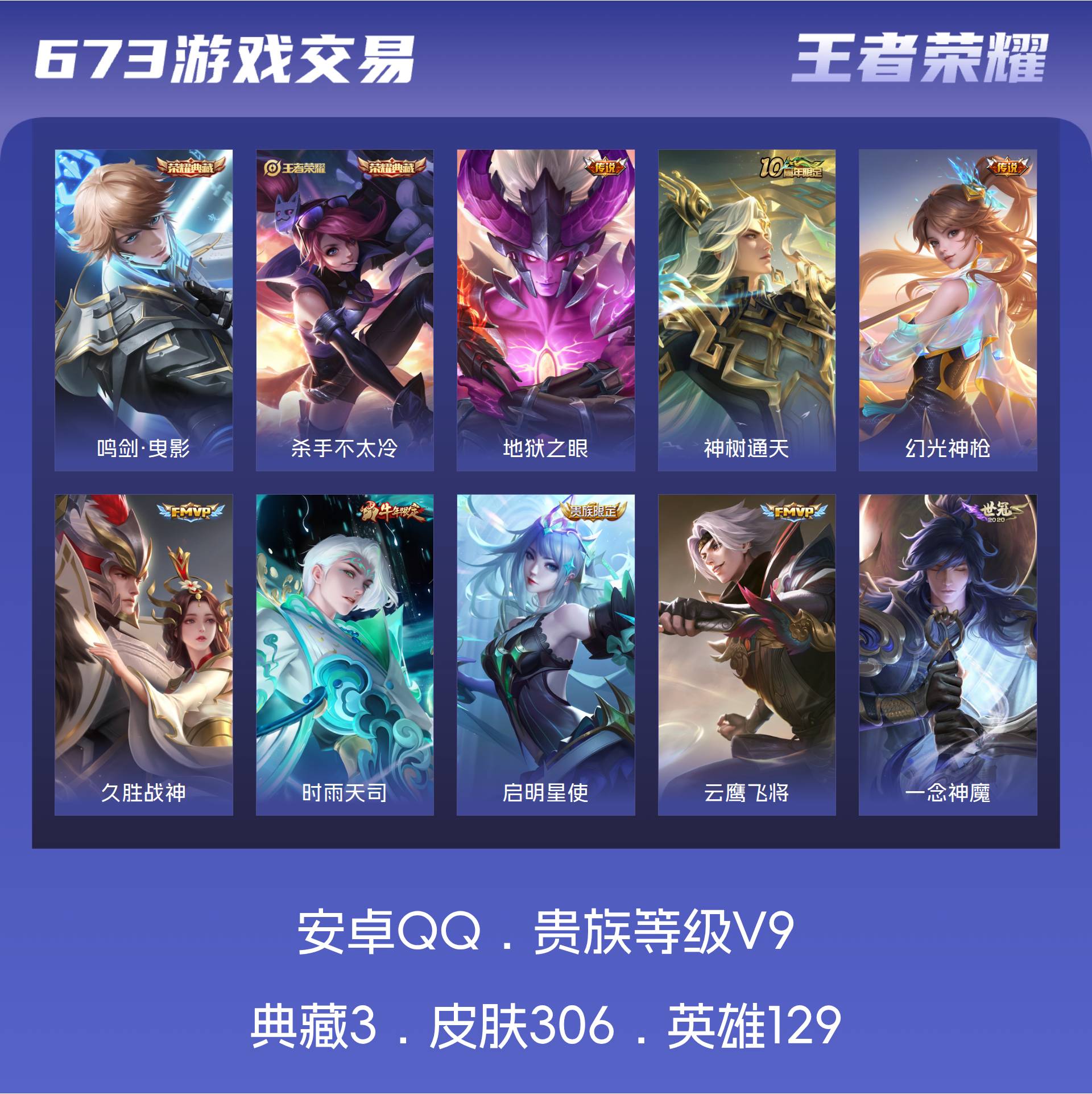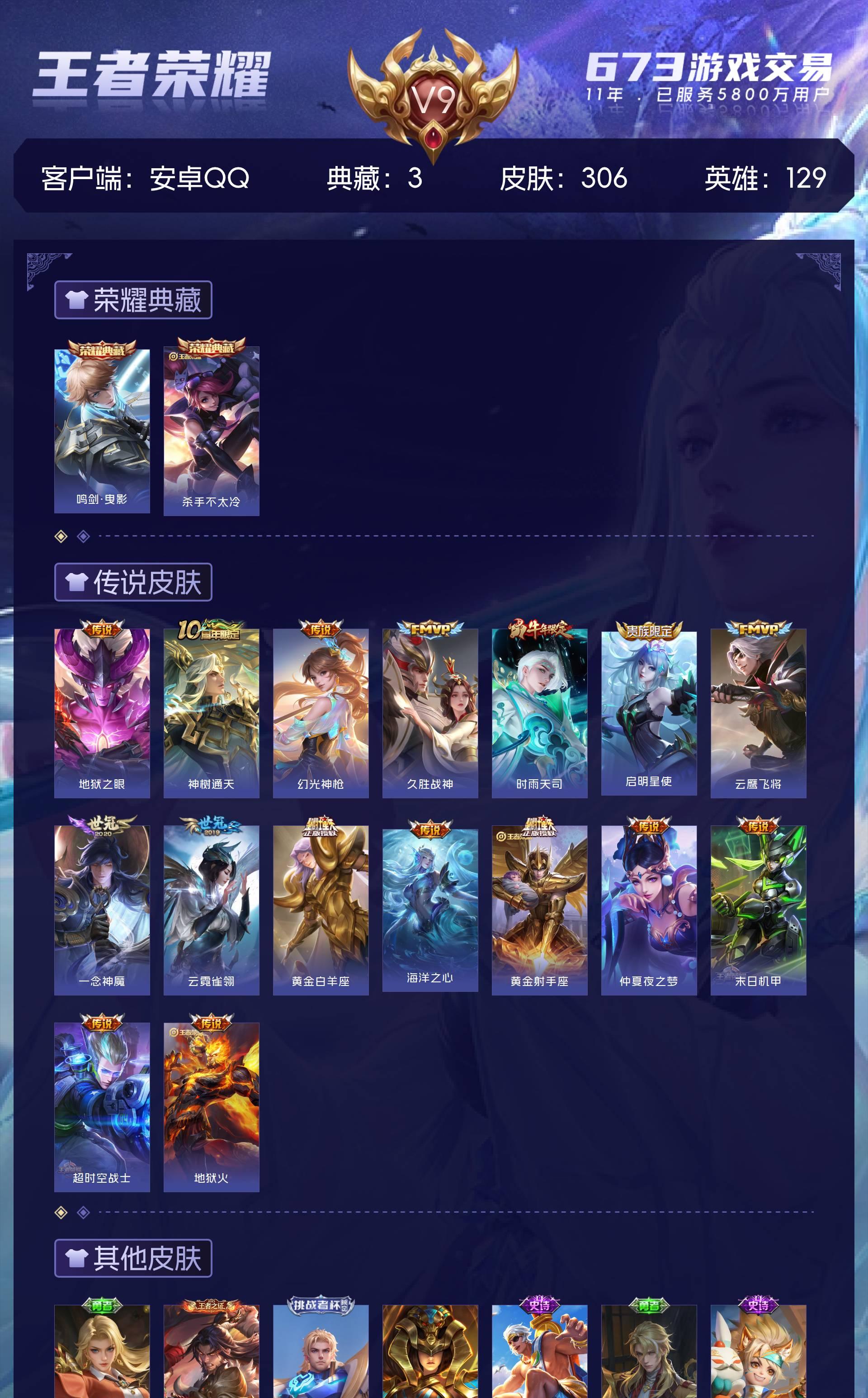 V9 皮肤306 英雄129 永恒钻石 荣耀典藏3 星传说2 传说16 其他皮肤293