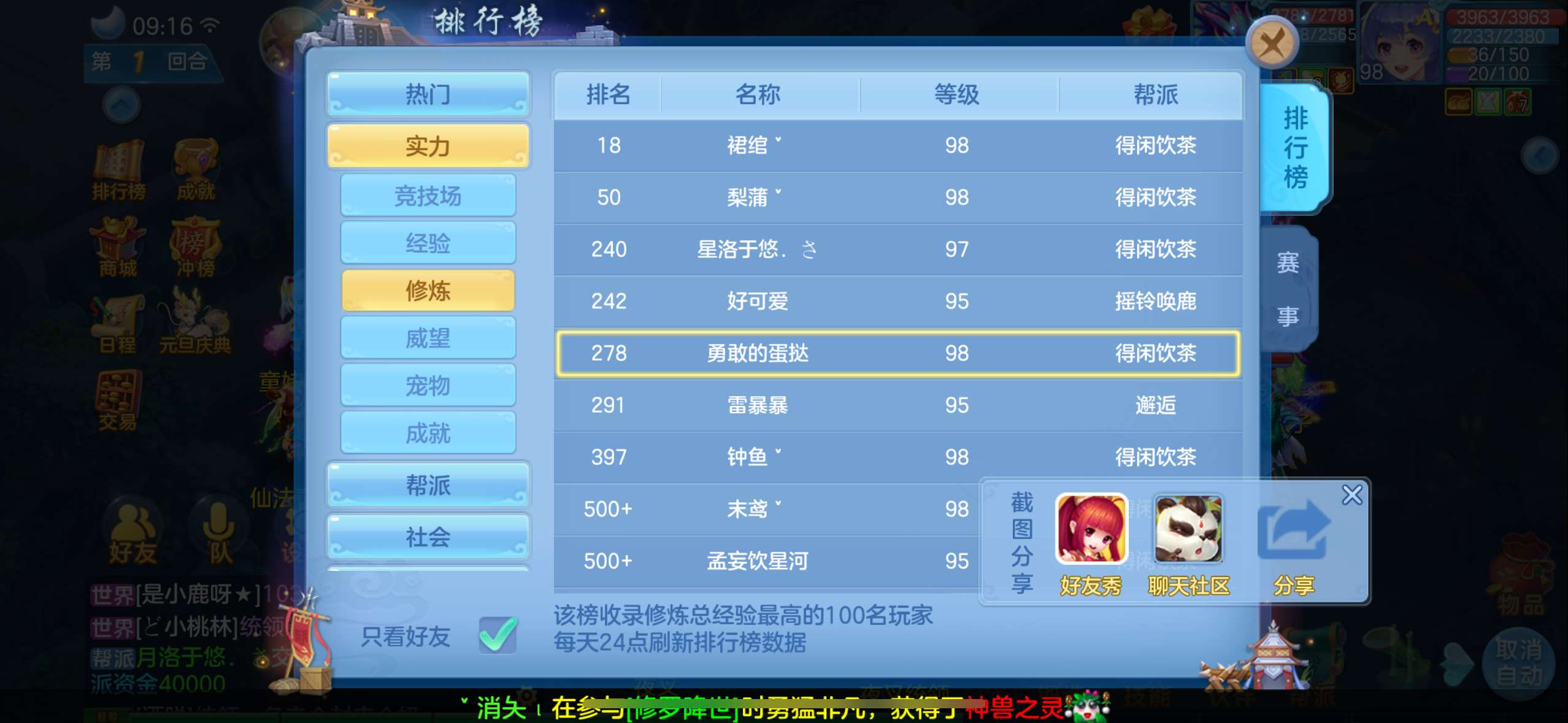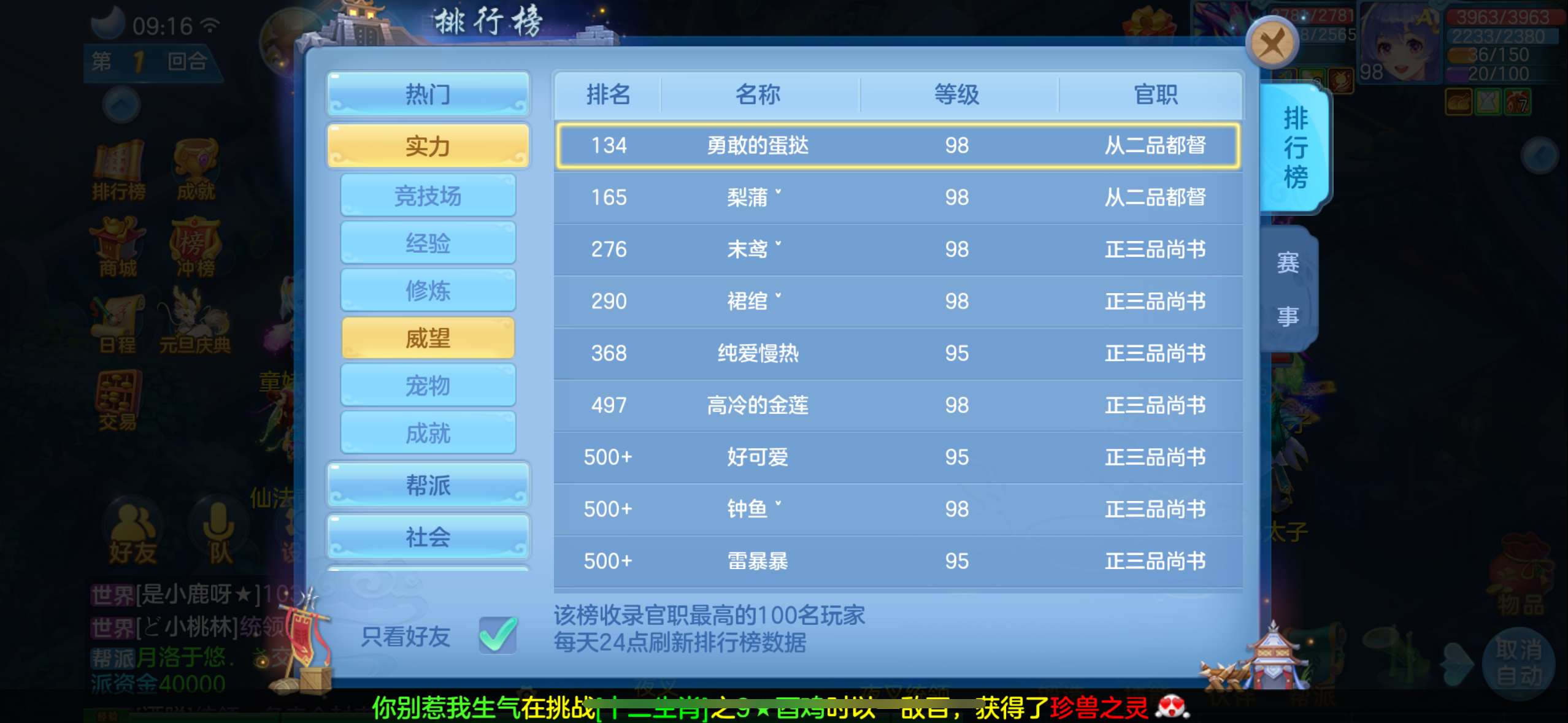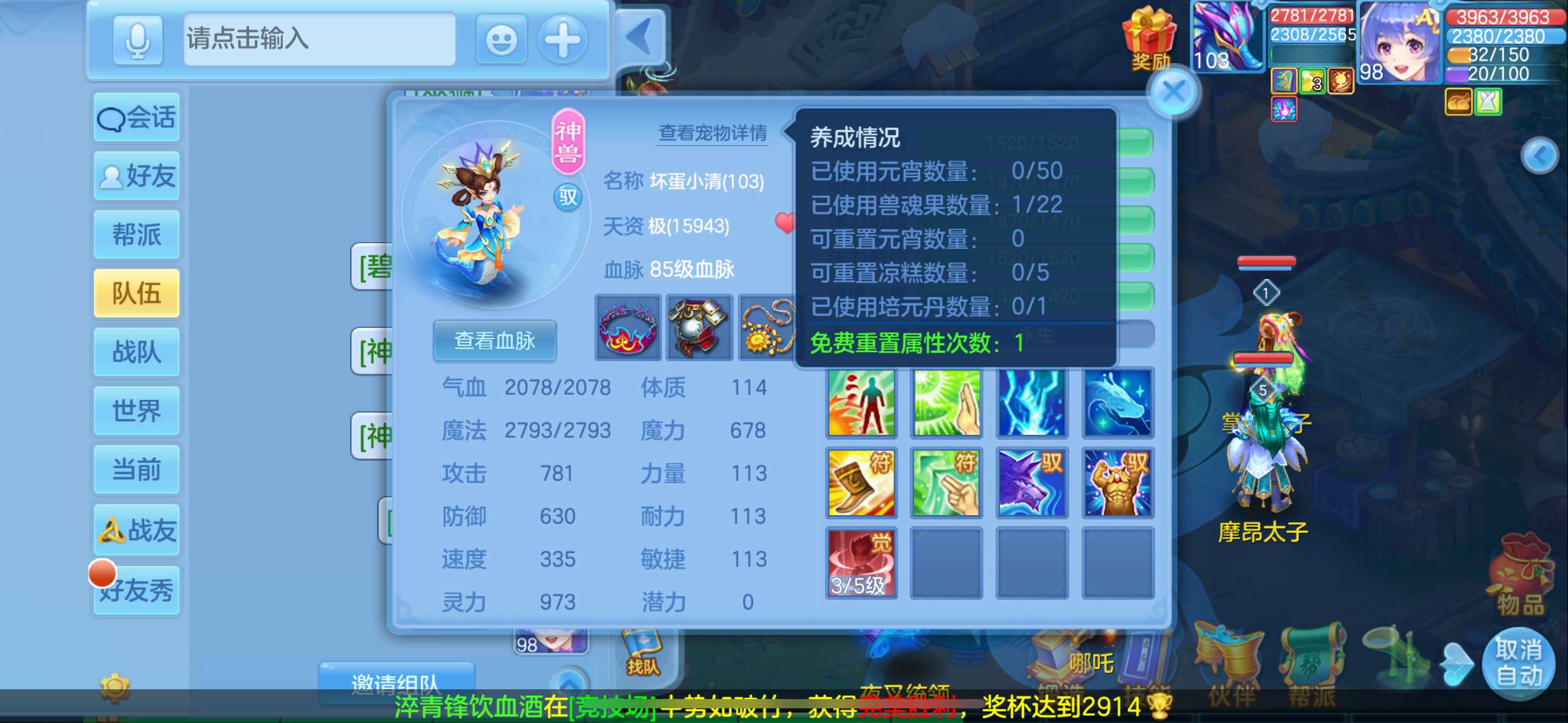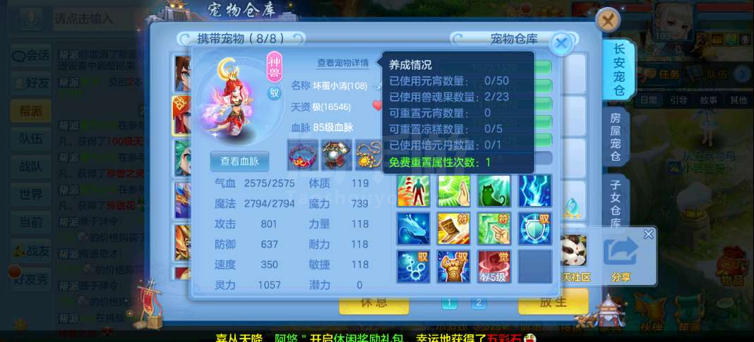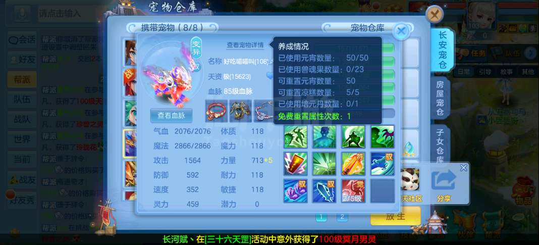 周年锦绣98级女万兽,7天换绑,高坐怒龙,1满兽魂内丹蛇1法蛇,修炼经验威望排行,宝宝齐全