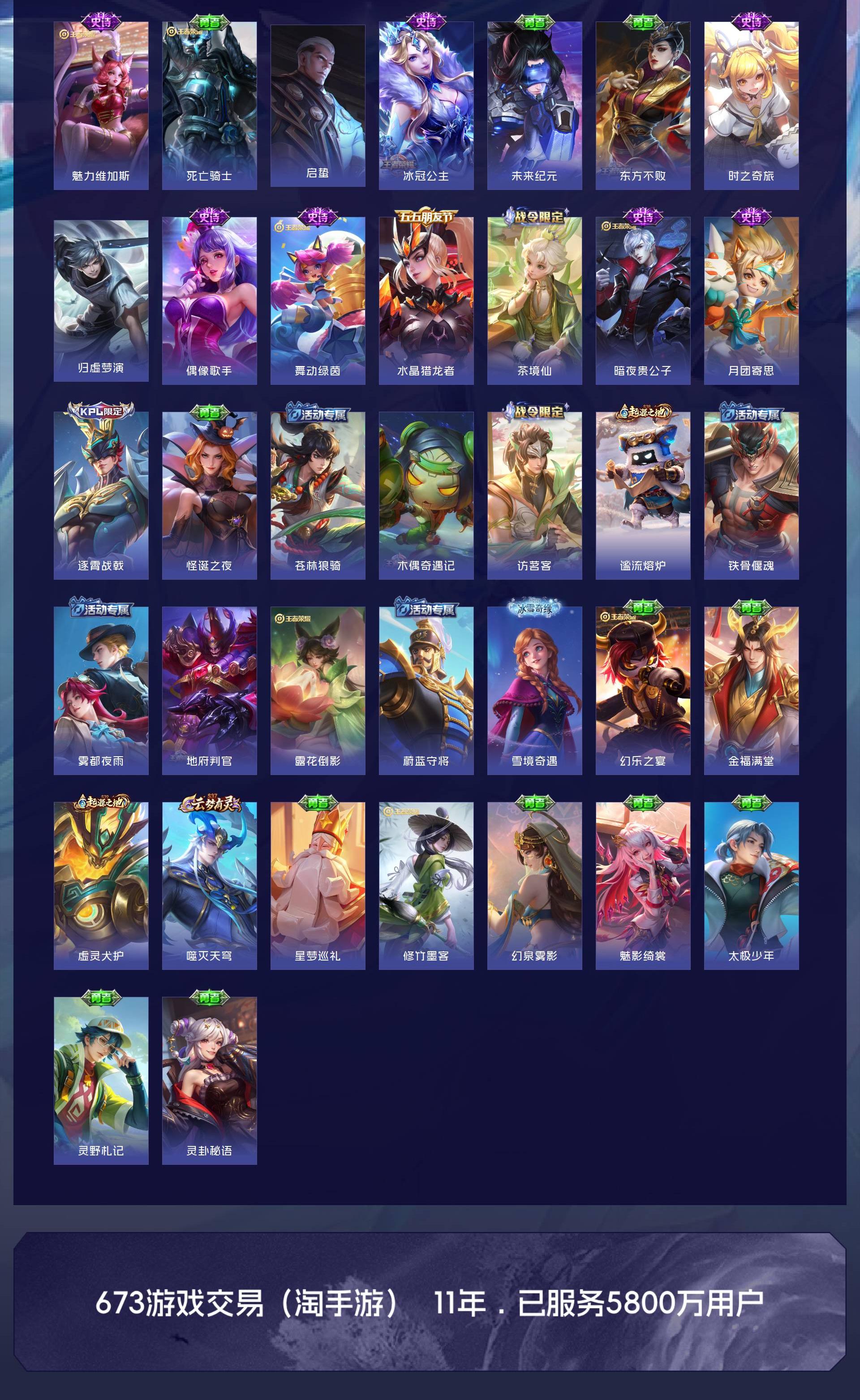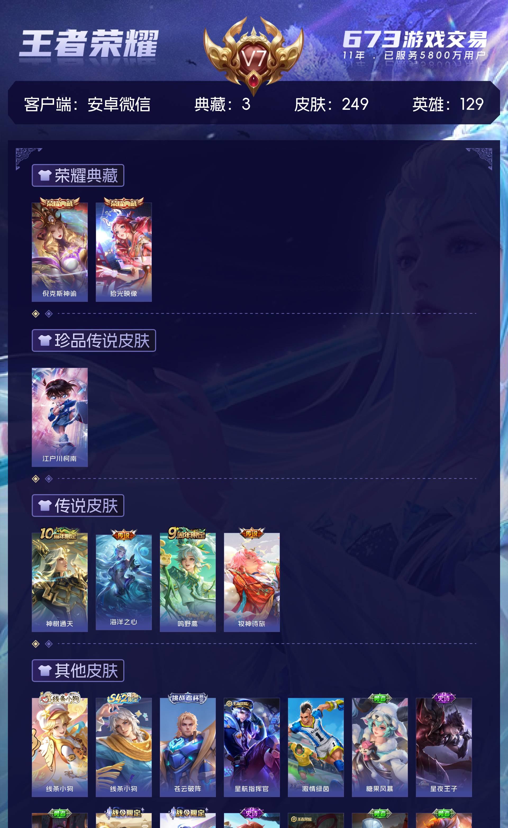 V7 皮肤249 英雄129 永恒钻石 荣耀典藏3 珍品传说1 传说4 其他皮肤247