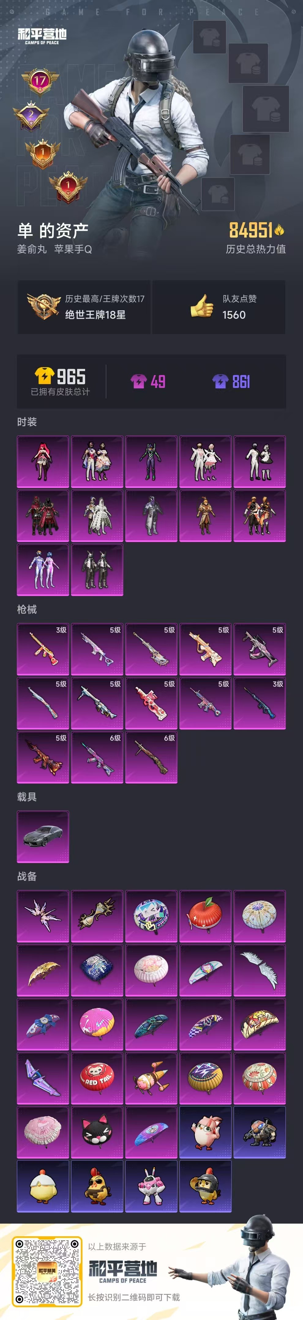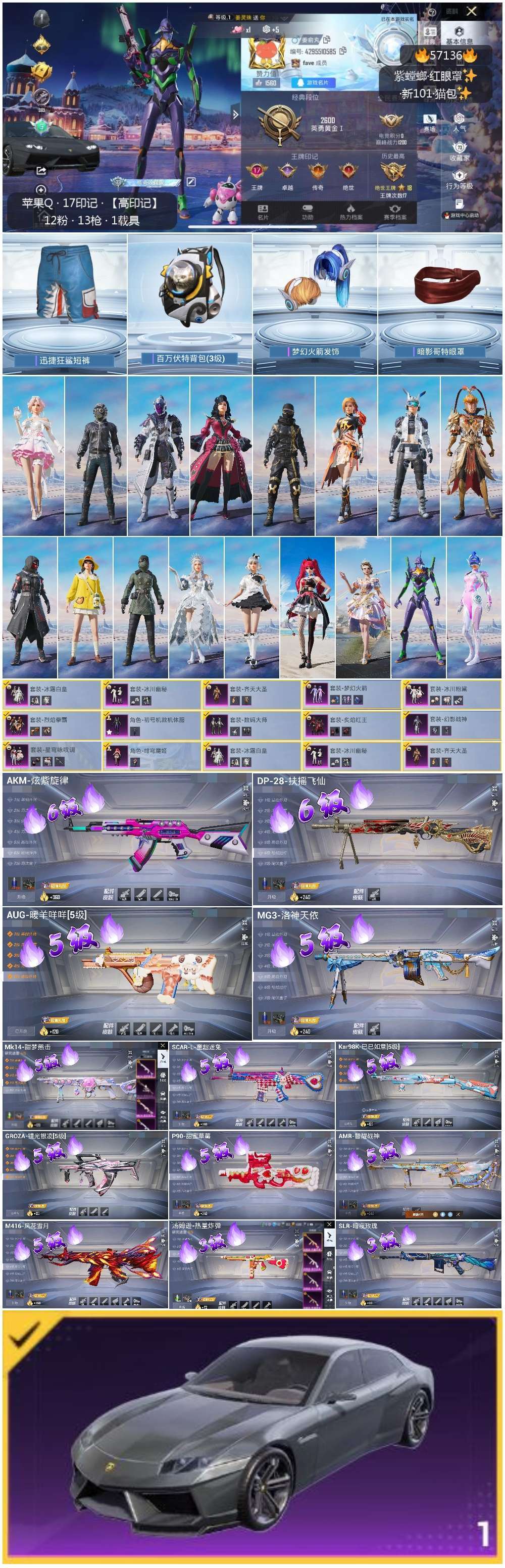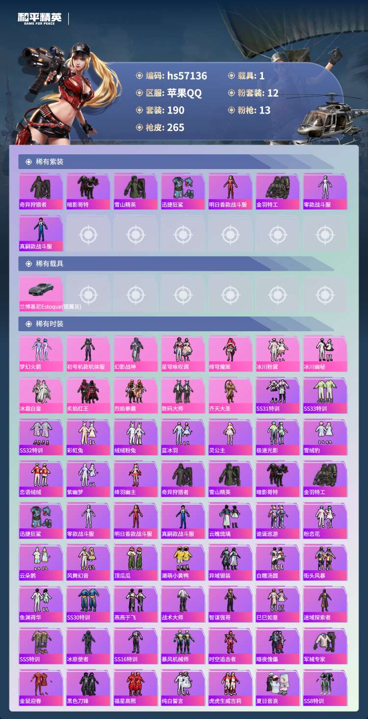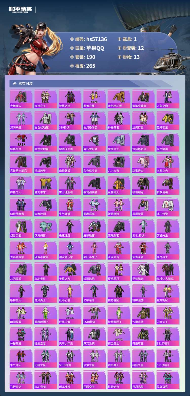 hs57136 苹果手Q-17王牌印记-12粉装-13特效枪-1载具-85065热力值-190套装-