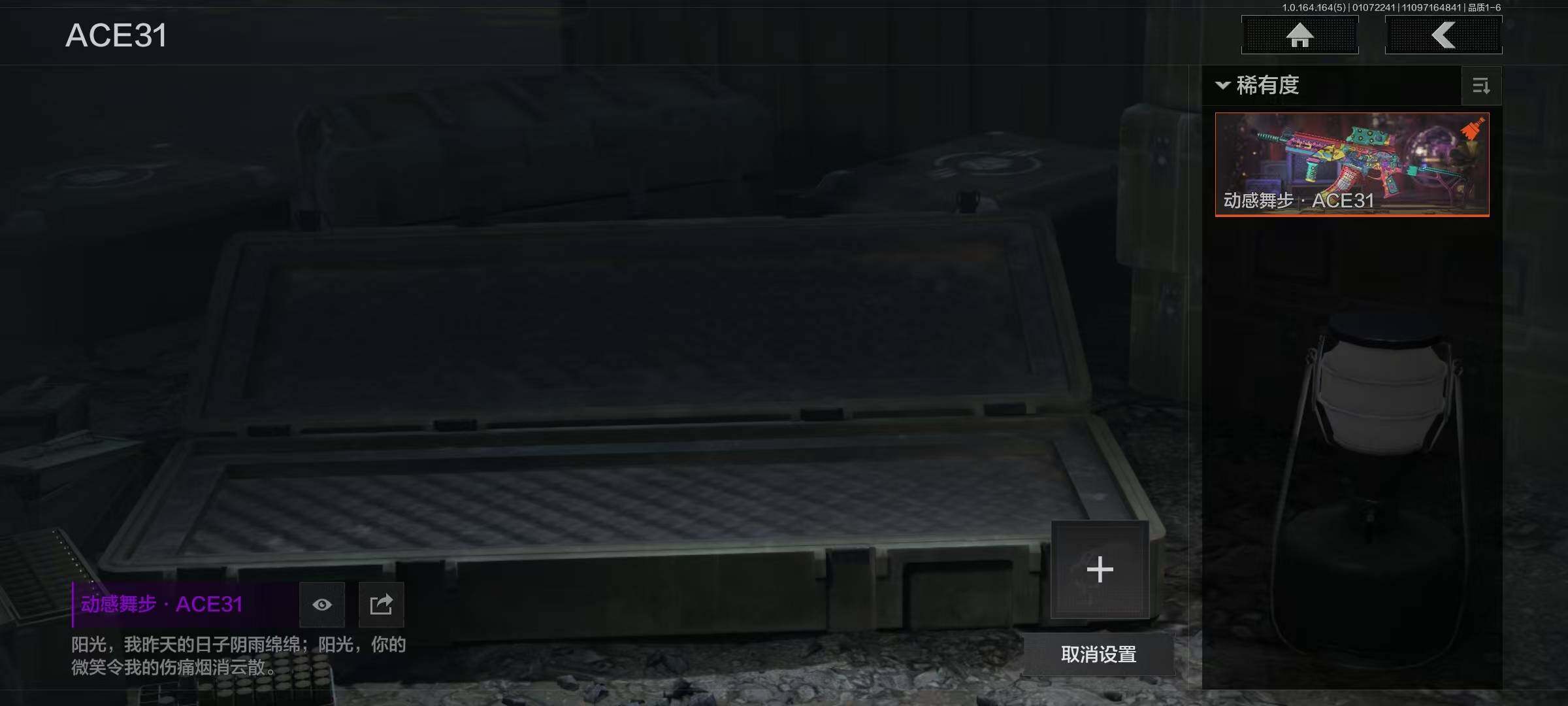 有二次 总资产9m ,金枪皮 旧王圣谕VSS 旧王圣谕·QBZ191 紫枪皮 典礼武备·S12K 骑士之剑·SCAR-L 鱼跃丹青·AK102 动感舞步·ACE31