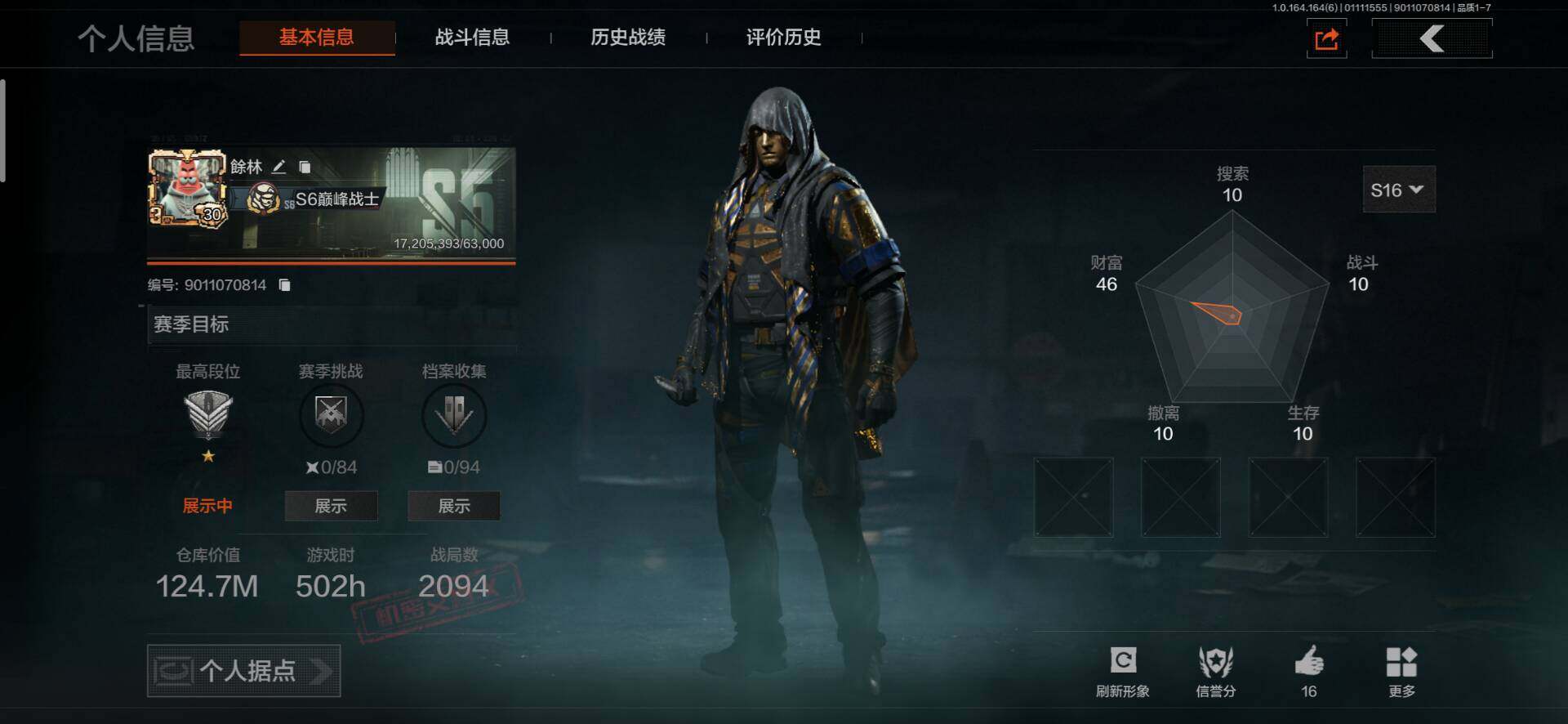 【AQQH260】段位:精英/仓库价值(百万):124.7/工兵铲/冥王
