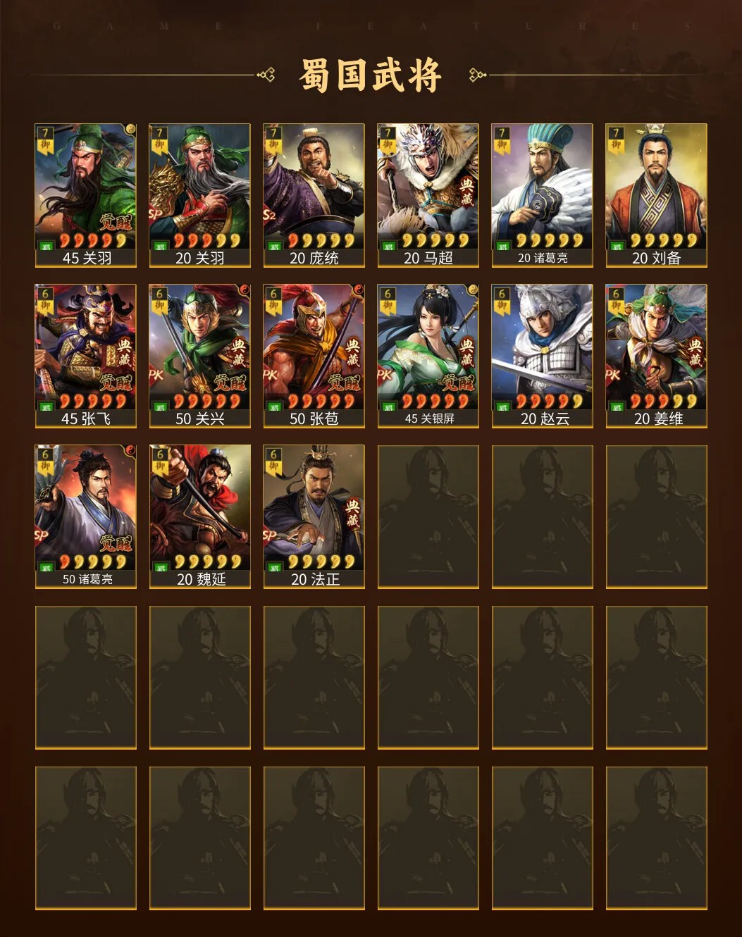 蜀国五星武将: