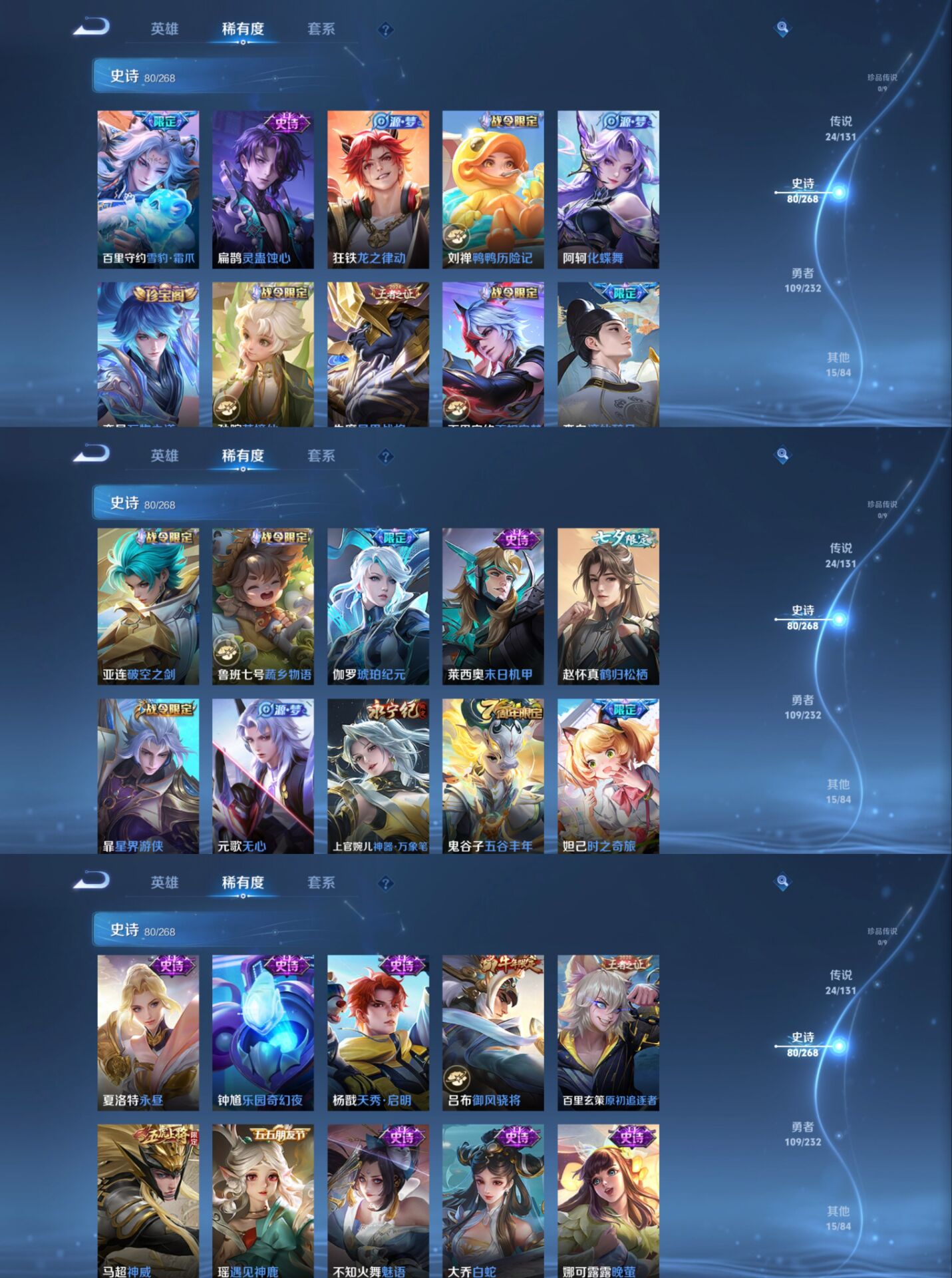 MWZ104476【v8 1无双 3典藏 24传说 3星传说(星际治安官 幽冥火 幽冥之眼)】安卓Q-232皮肤-127英雄 【无双皮肤】 碎月剑心 【典藏皮肤】 神鉴启示录 鸣剑·曳影 银白咏叹调 【传说皮肤】 神树通天 浮生妄 鸣野蒿 时之奇旅 逐花归海 九山相柳 战鼓燎原 曦玄引 幻光神枪 祥瑞亨通 愿照·九州拓 深海之息 无双飞将 地狱之眼 炽阳神光 飞鸢探春 异界灵契 乞巧织情 游龙清影 云鹰飞将 启明星使 黄金白羊座 时雨天司 【史诗皮肤】 蔬乡物语 蔬乡物语 破空之剑 茶境仙 星