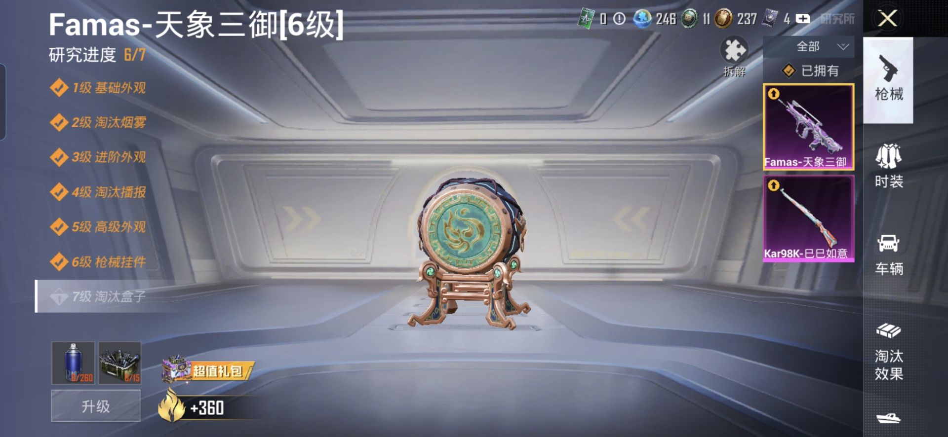 【特价出售】1王牌印记-2粉装-2特效枪-51枪皮-36套装-1载具 【1载具】 保时捷911 敞篷版(极速黄) 【2粉装】 星渊 震天雷神 【2特效枪】 Famas-天象三御 Kar98K-巳巳如意 【3飞行器】 炫彩糖果飞行器 极意拳锋飞行器 天象三御飞行器 【9头盔】 异瞳寒姬头盔(3级) 粉黛兰香头盔(3级) 炫彩糖果头盔(3级) 天象三御头盔(3级) 狂鲨锋刃头盔(3级) 冰魄头盔(3