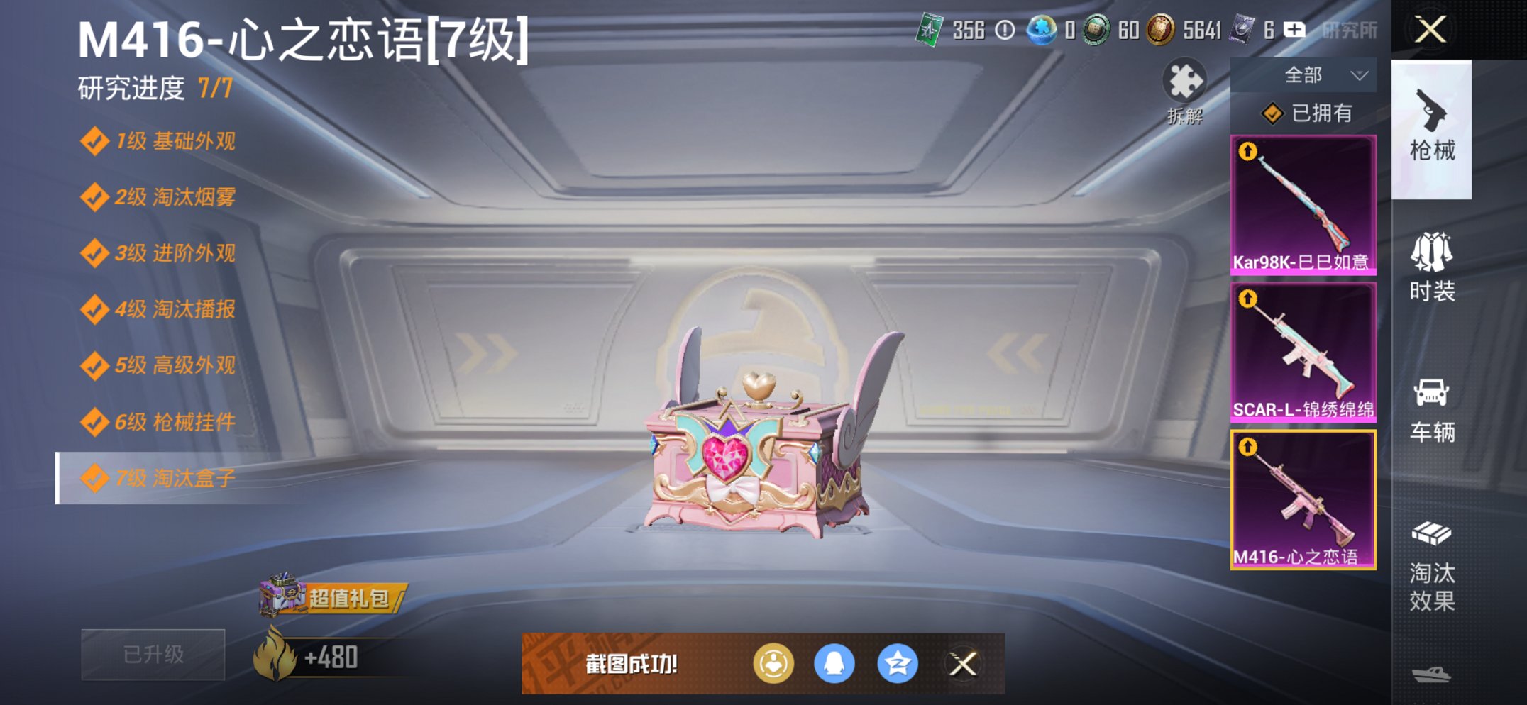 满级M4心之恋语5粉装3特效枪、秒换绑不用等