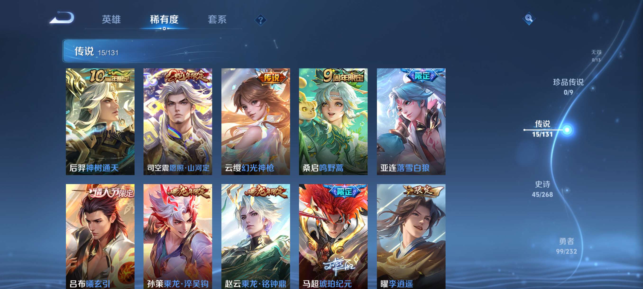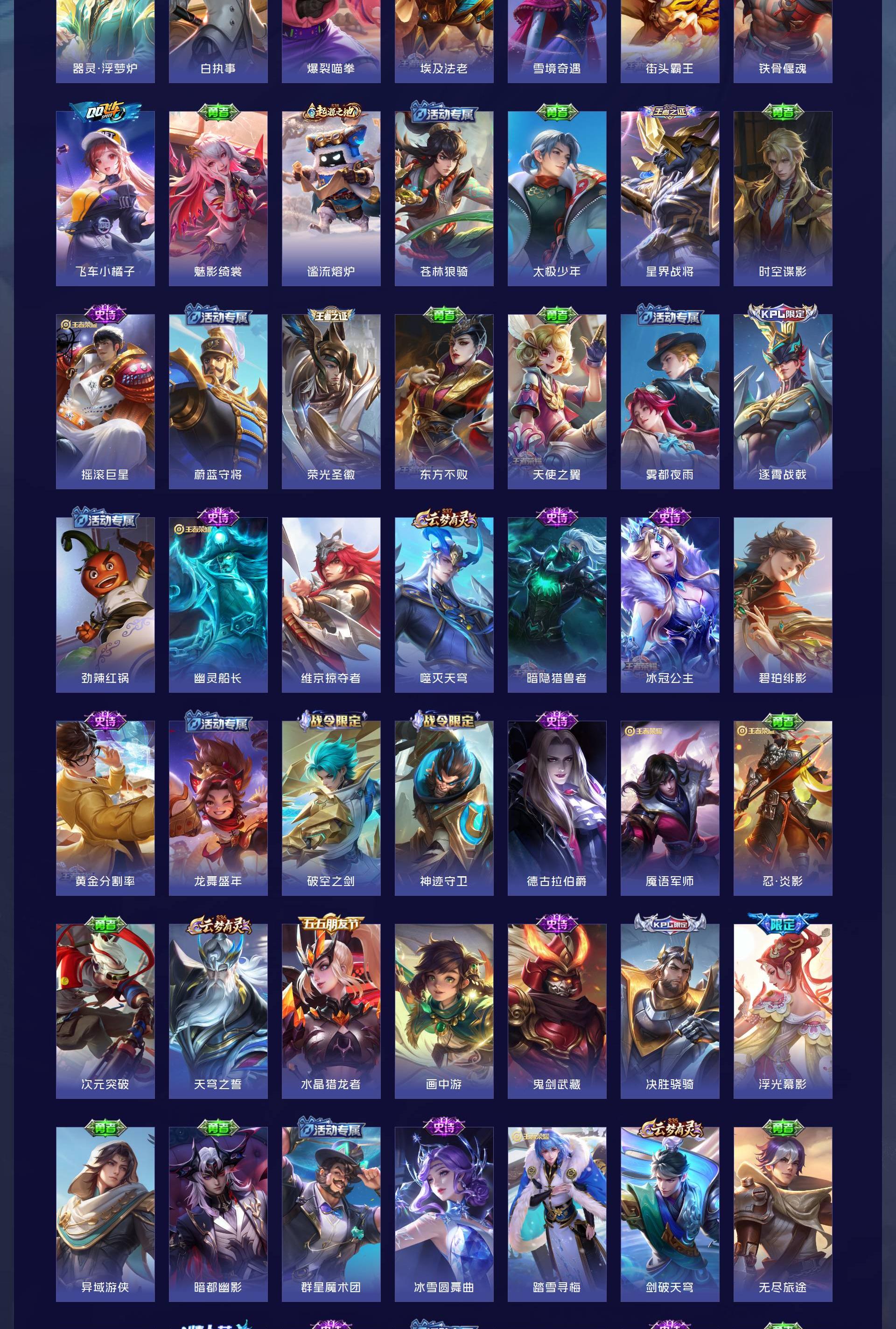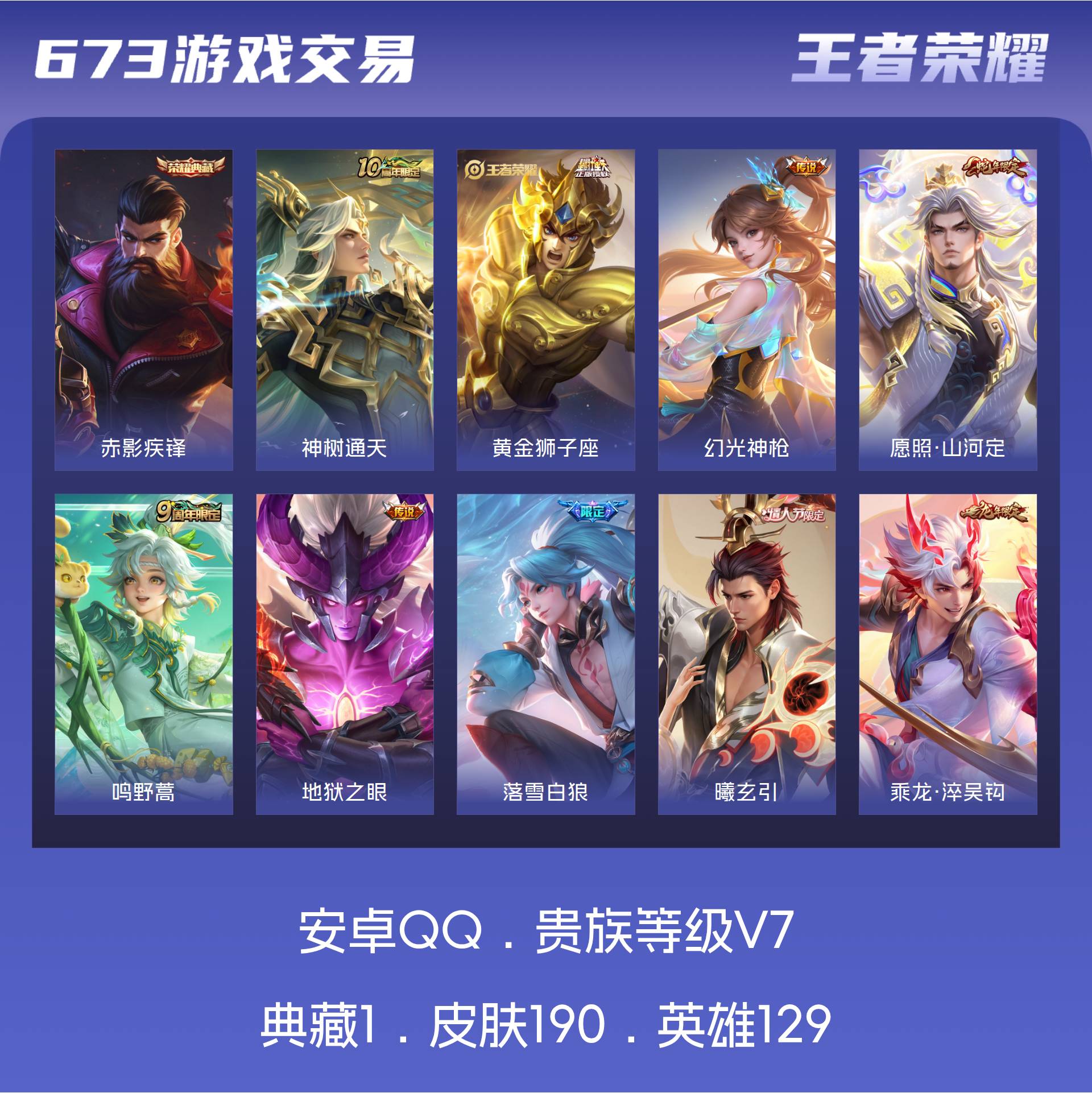 V7 皮肤190 英雄129 至尊星耀 荣耀典藏1 星传说2 传说15 其他皮肤179