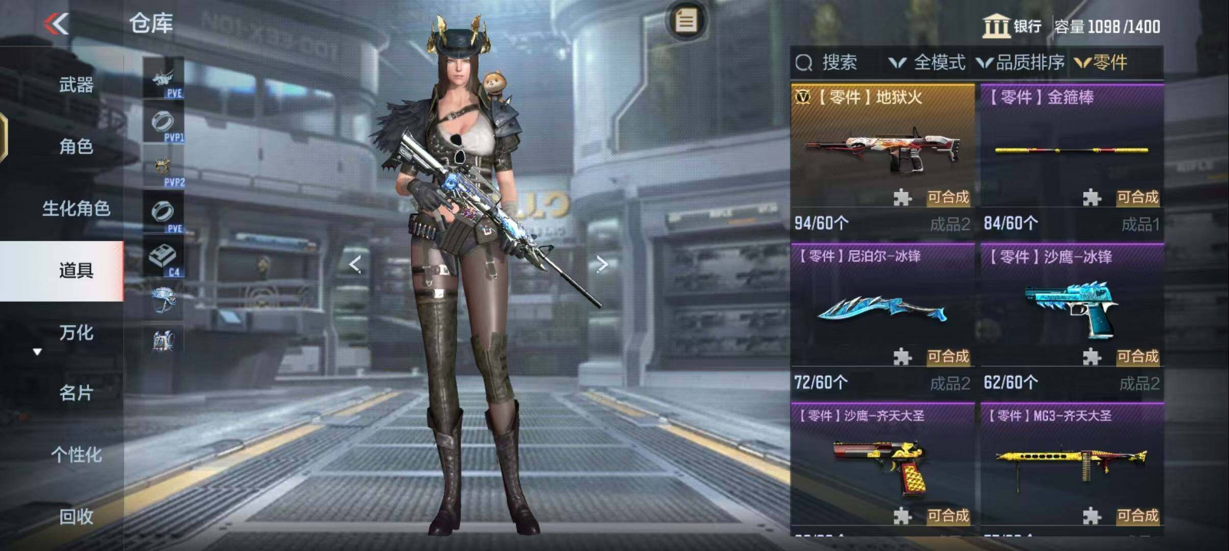 【英雄武器】:VSK-94-金蚀,HK417-炎龙铠甲,FAMAS-湮灭,AK47-无影,AK47-黑武士觉醒,AK47-沙漠领主*2,AK47-樱斗士-超觉,AK47-猩红传说,AK47-沙漠郡主-二觉,AK47-燎天净火,AK47-