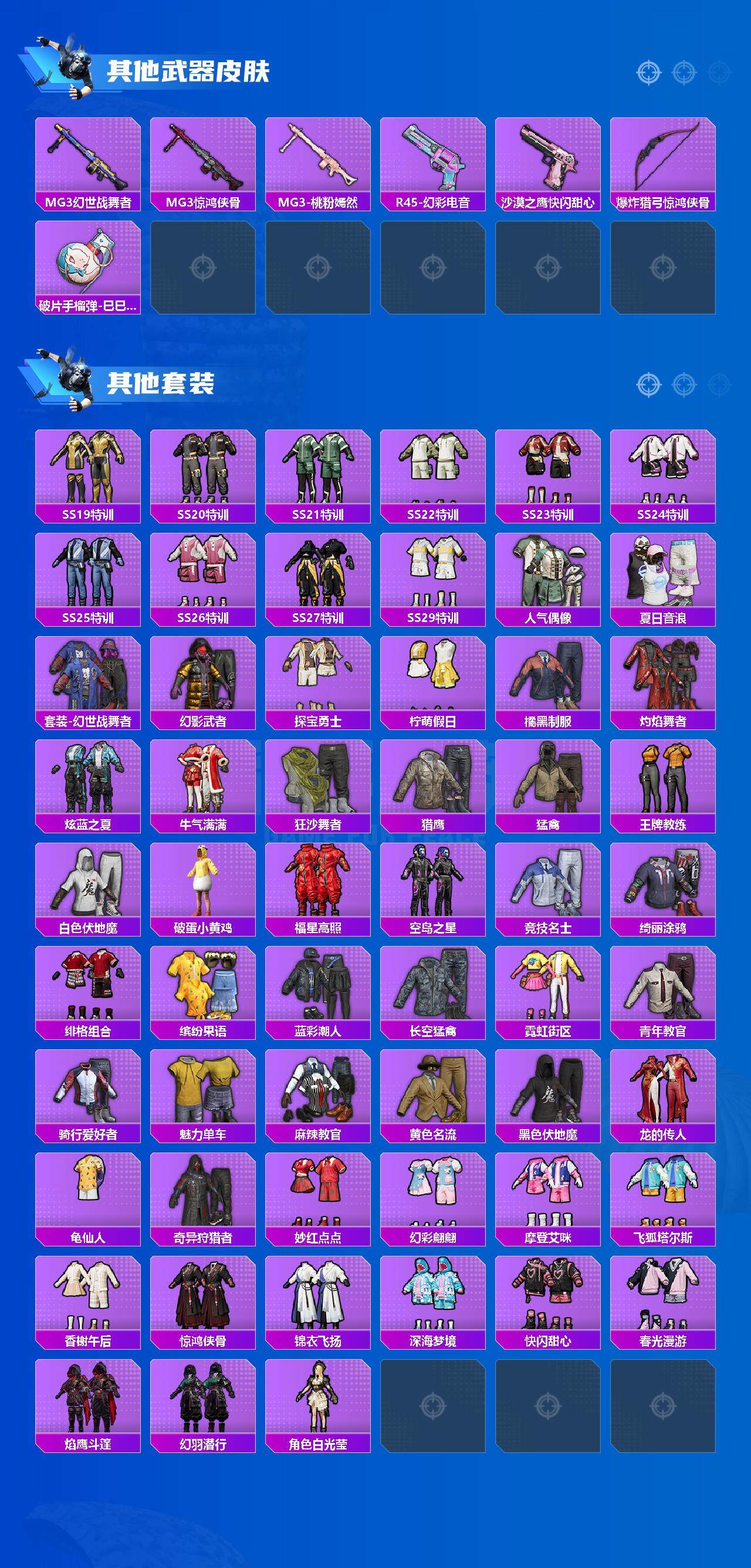 【粉色套装】:角色-复仇流浪者,粉装-音爆索尼克,角色-烟云彩露
