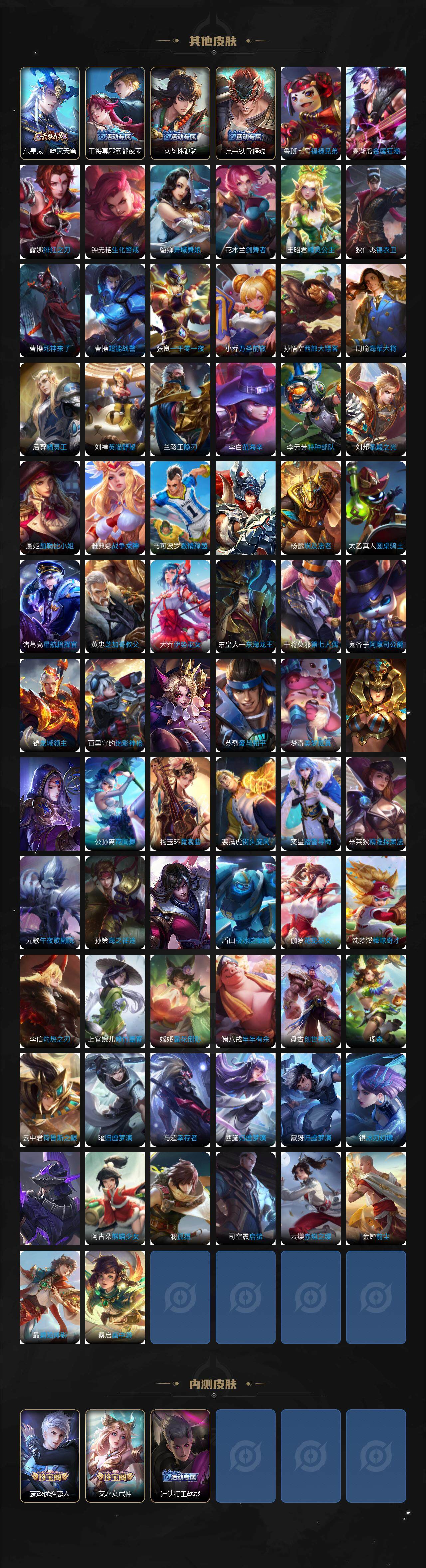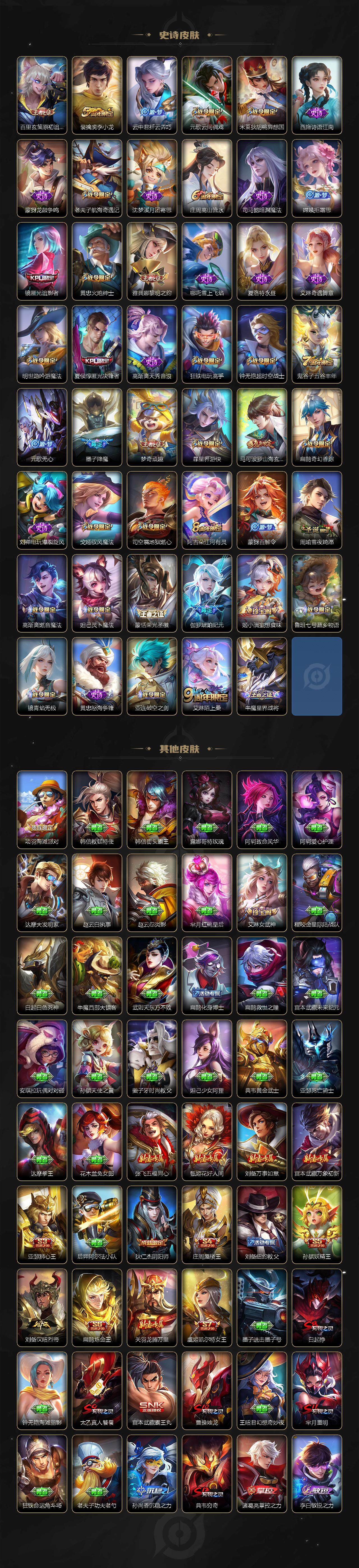 【传说皮肤】:桑启鸣野蒿,孙尚香乘龙问璇玑,大乔时之奇旅,澜电玩雷克斯,虞姬无