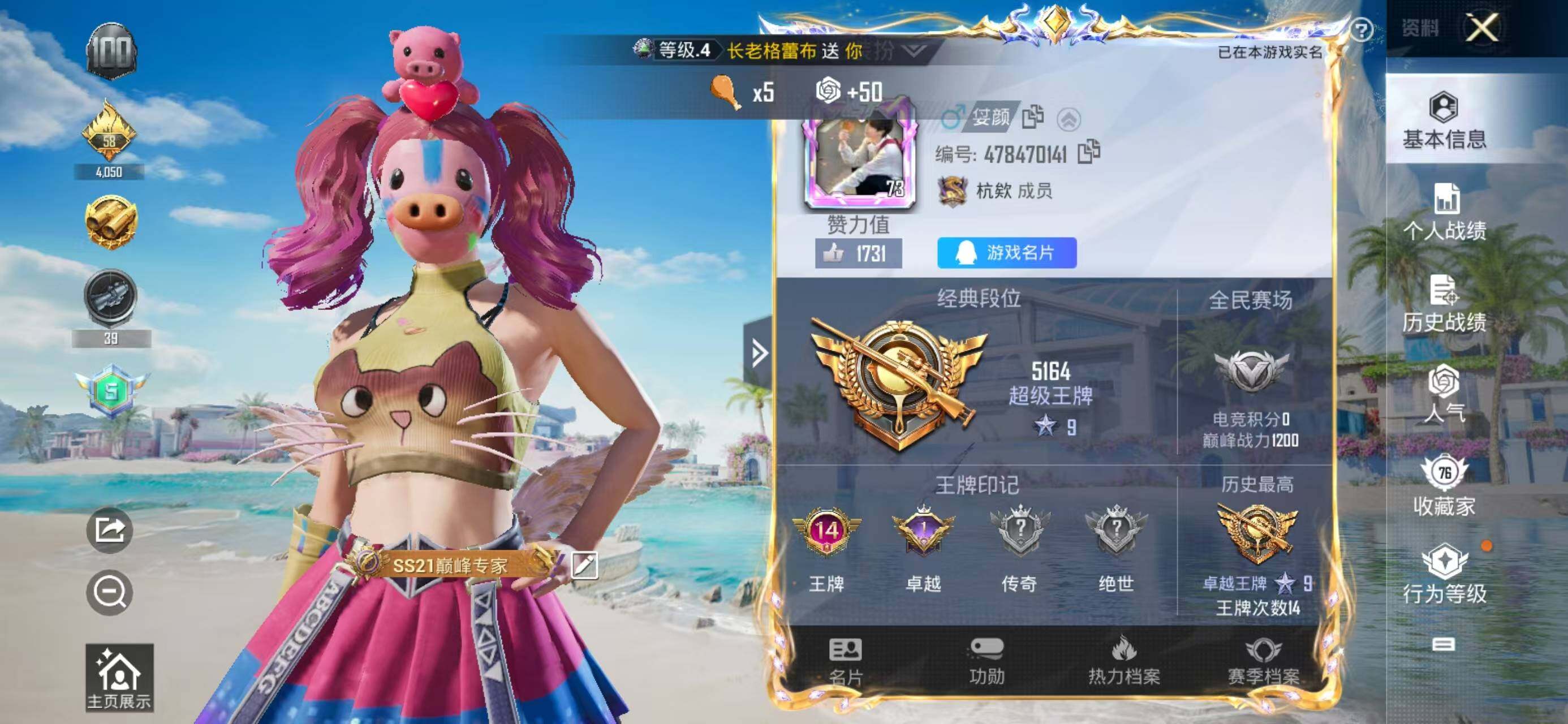【和平王者一体号 缤纷油彩 公主号 12特效枪 3载具金玛莎拉蒂 23传说1水晶】:安卓Q-V9-至尊星耀II段位-126英雄-349皮肤-1典藏-0珍品无双-0无双-0珍品传说-23传说-107史诗