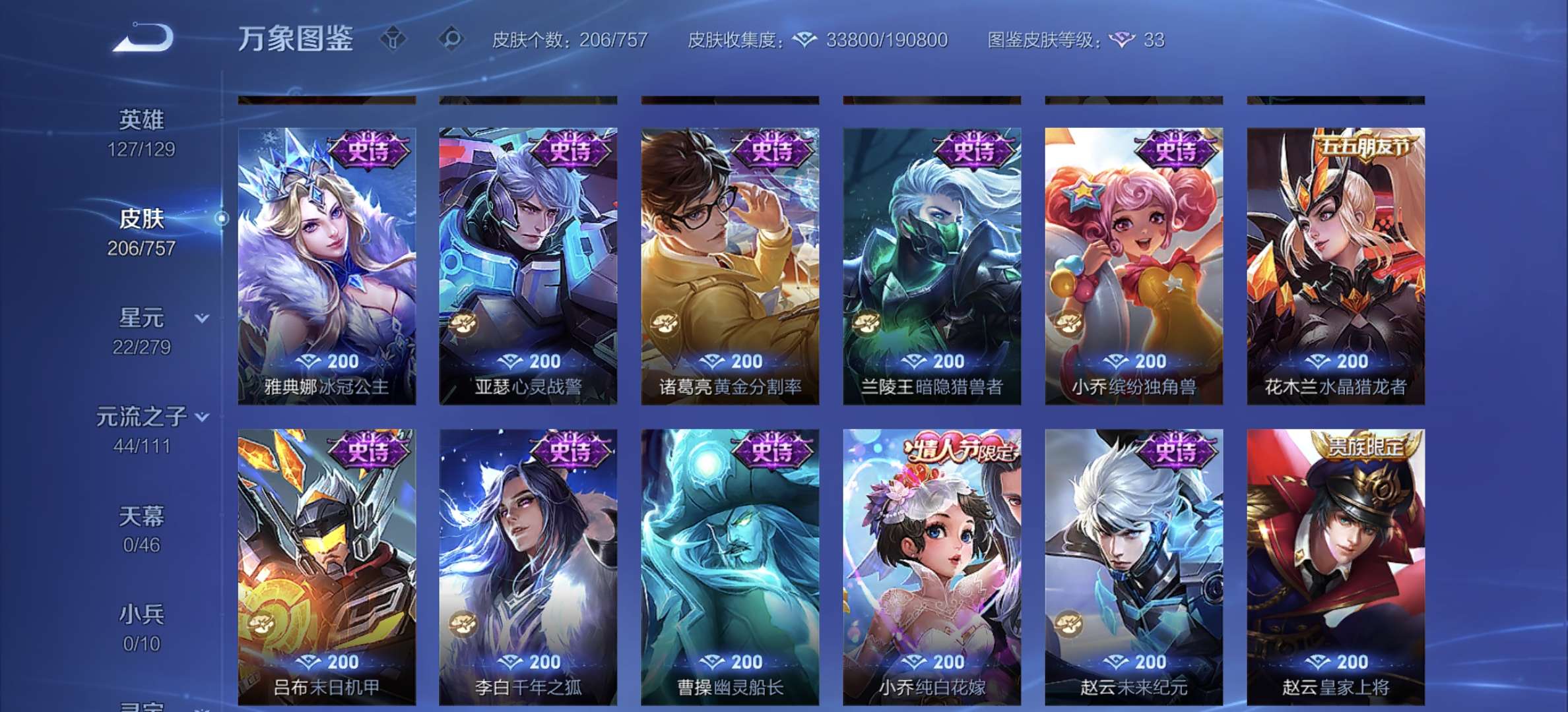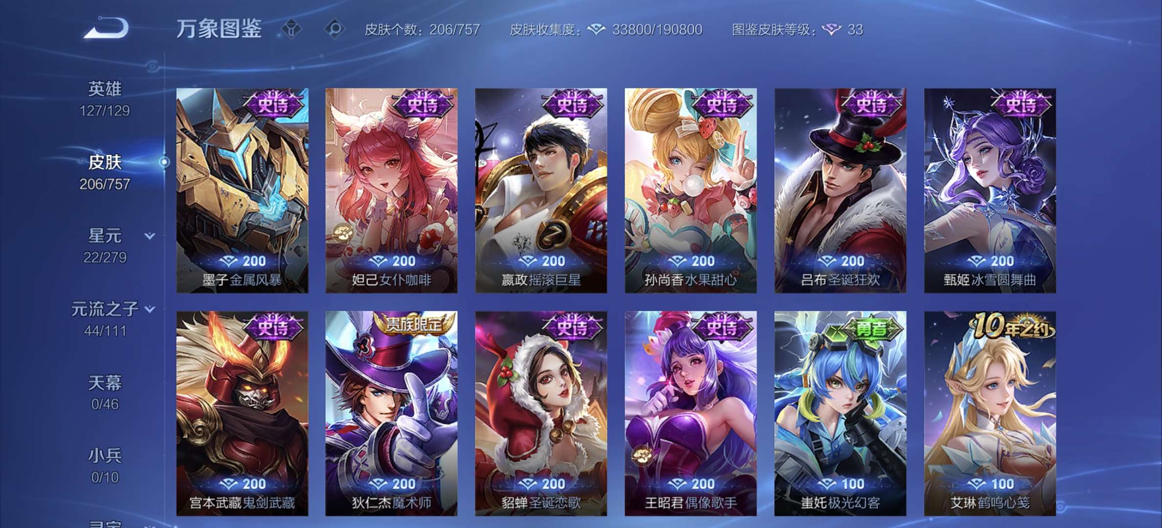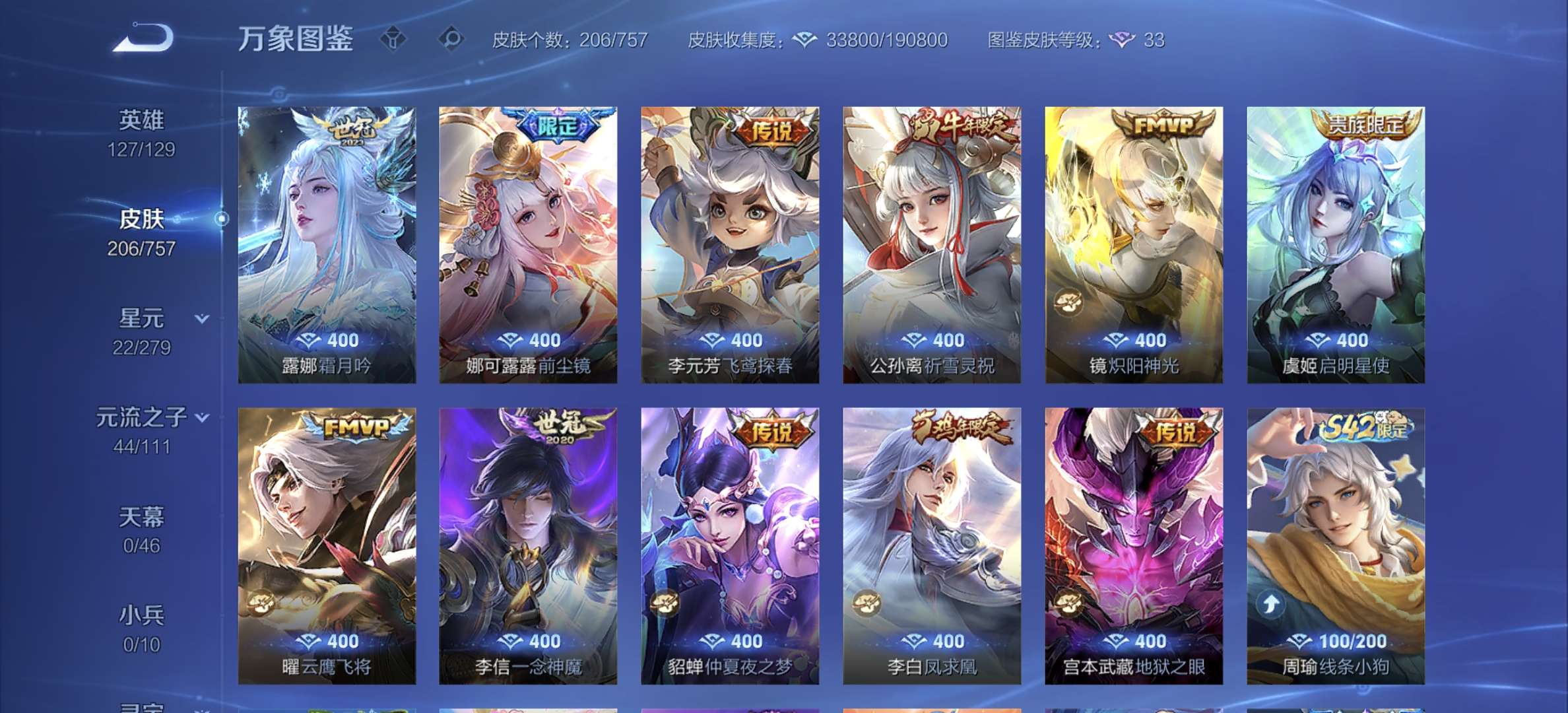 1.2w蚩姹 1w项羽 李白典藏 耀无双 宫本星传说21个传说 纯白花嫁 大圣娶亲等一系列限定皮