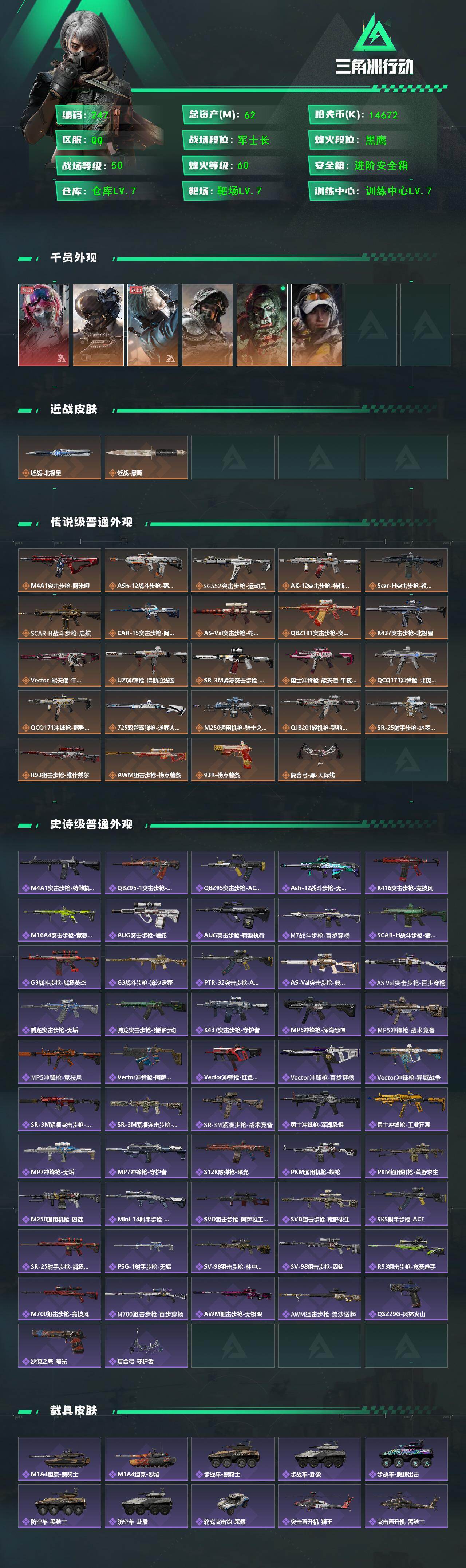 【满级号 北极星 5干员皮肤 满体 满负重】62m总资产-14672k哈伏币-60烽火等级-黑鹰-50战场等级-军士长