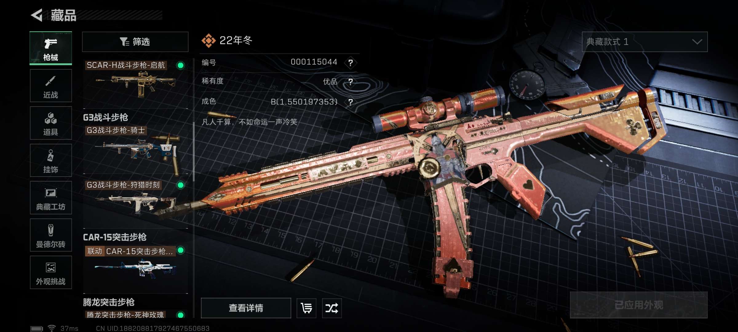 红狼红皮蚀金玫瑰+命运优品B特效枪皮!信条刀皮+送葬人♥挂件有很多加上枪皮卖掉三角券预计值800块钱