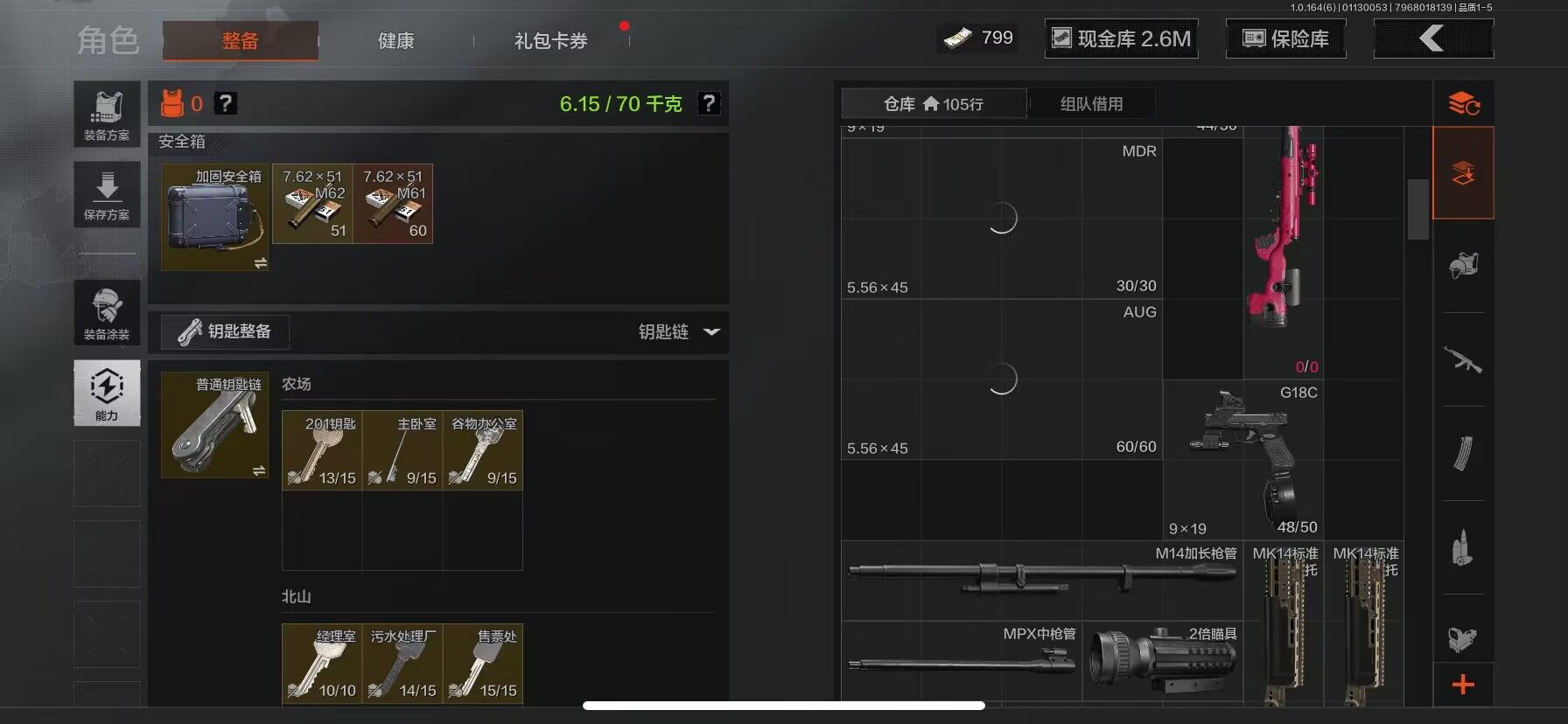 等级:30/段位:暗区传说/仓库价值(百万):4.9/柯恩币:2561000/精英指虎/旧王圣谕QBZ191/告丧夜曲AR57