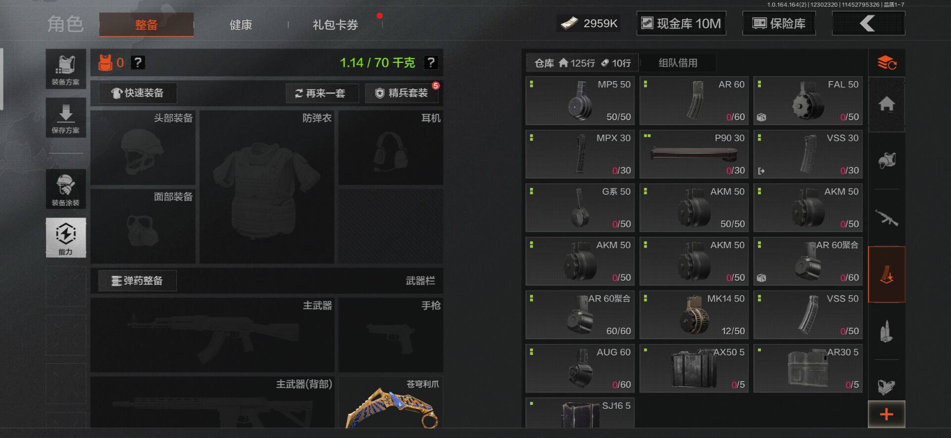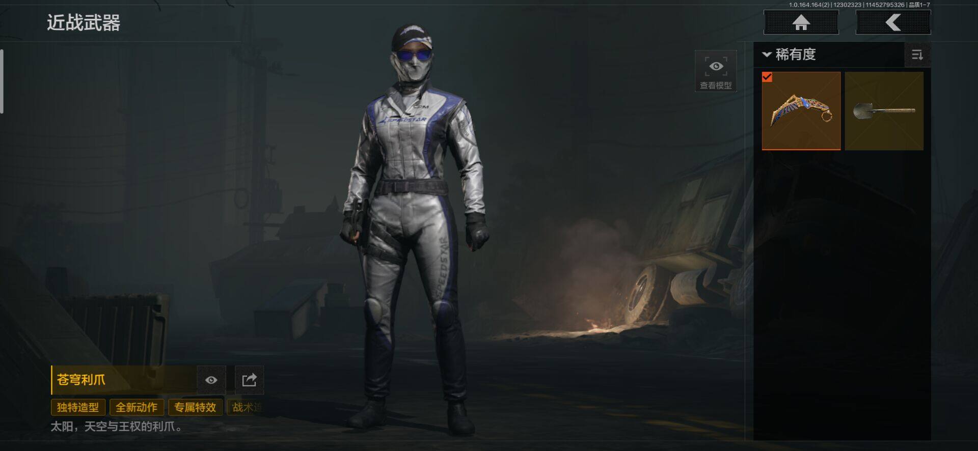 段位:大师/仓库价值(百万):19/苍穹利爪/工兵铲