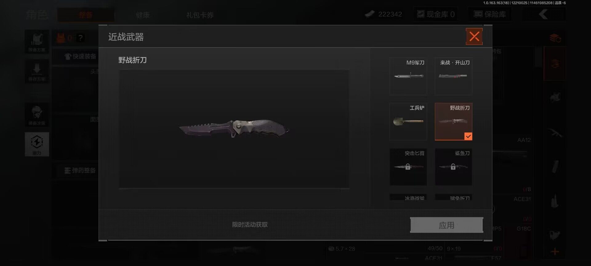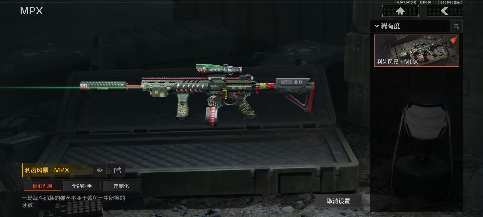 段位:王牌/仓库价值(百万):1/野战折刀/利齿风暴MPX/告丧夜曲AUG