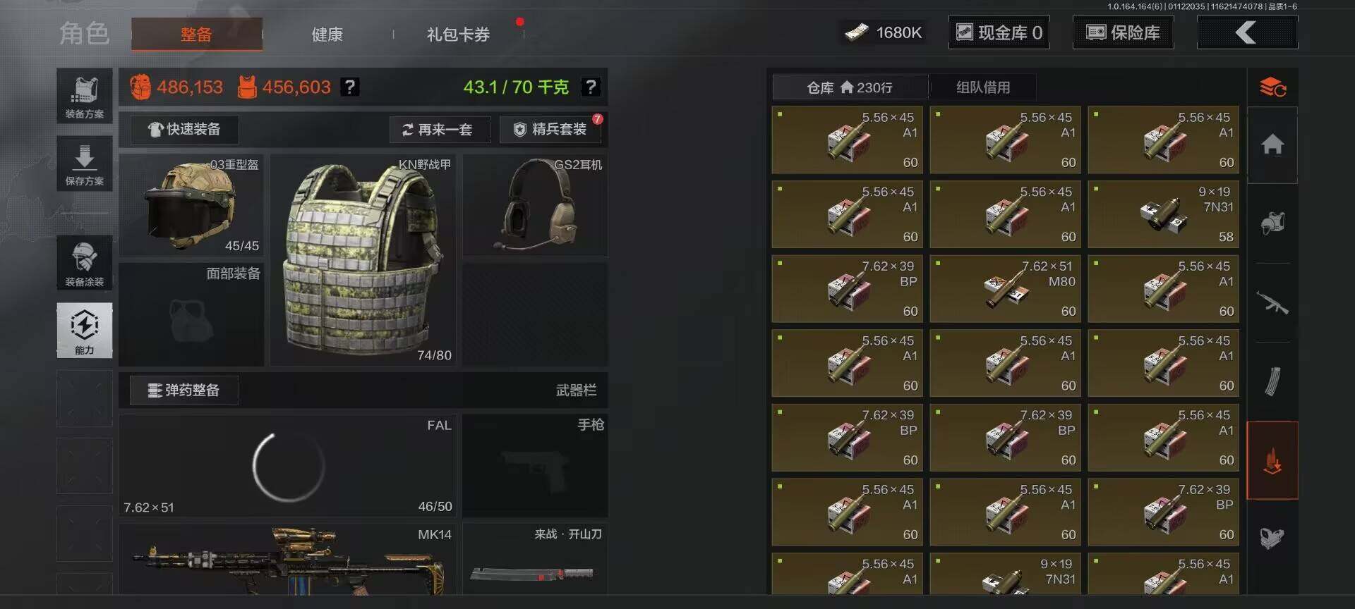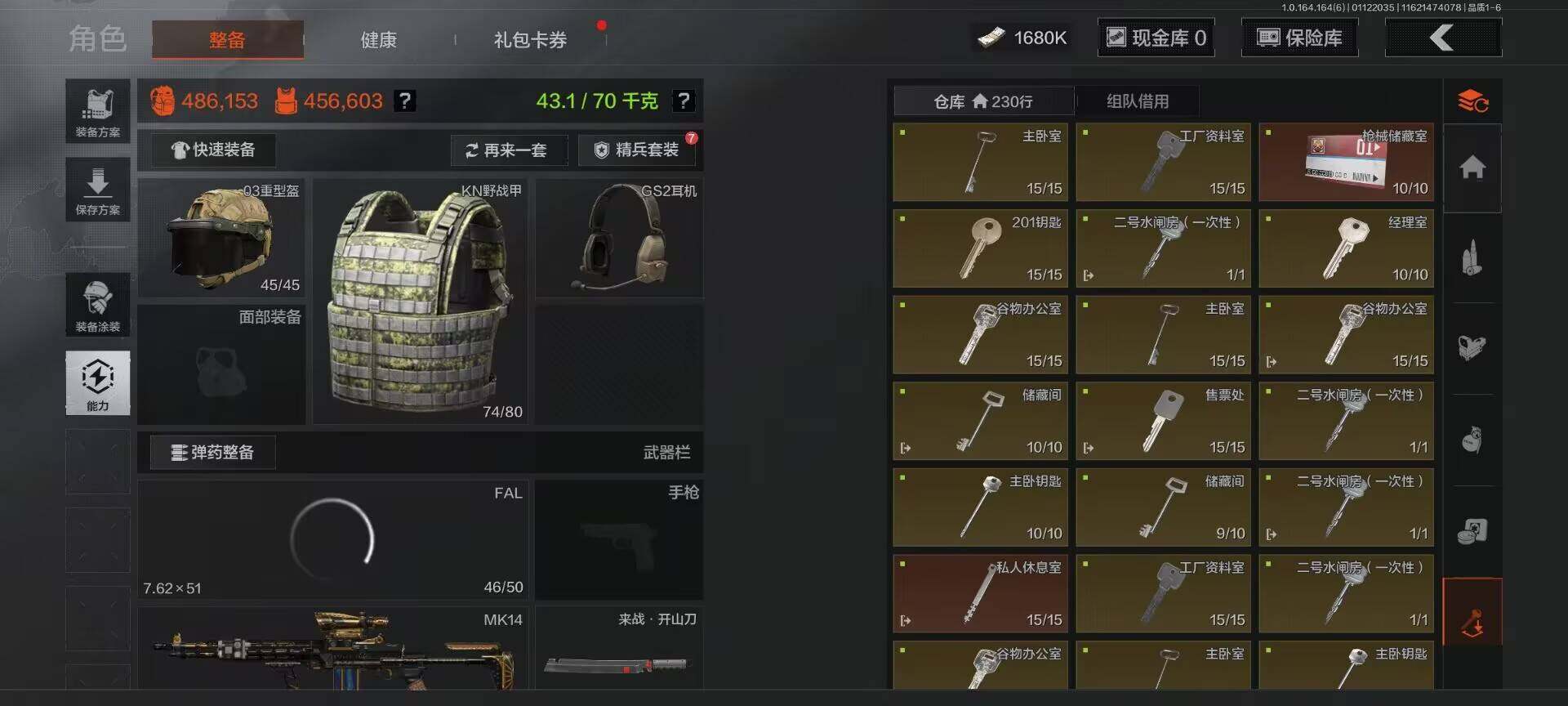 等级:30/段位:专家/仓库价值(百万):46.8/柯恩币:1680000/来战开山刀