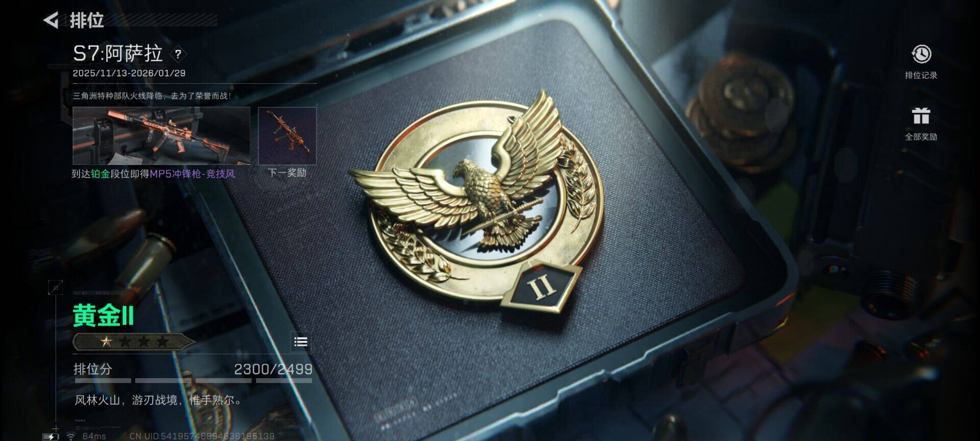 总资产(M):6M/哈夫币(K):5976K/传说枪皮数:2/全面战场等级:4_段位:无段位/烽火地带等级:26_段位:黄金/