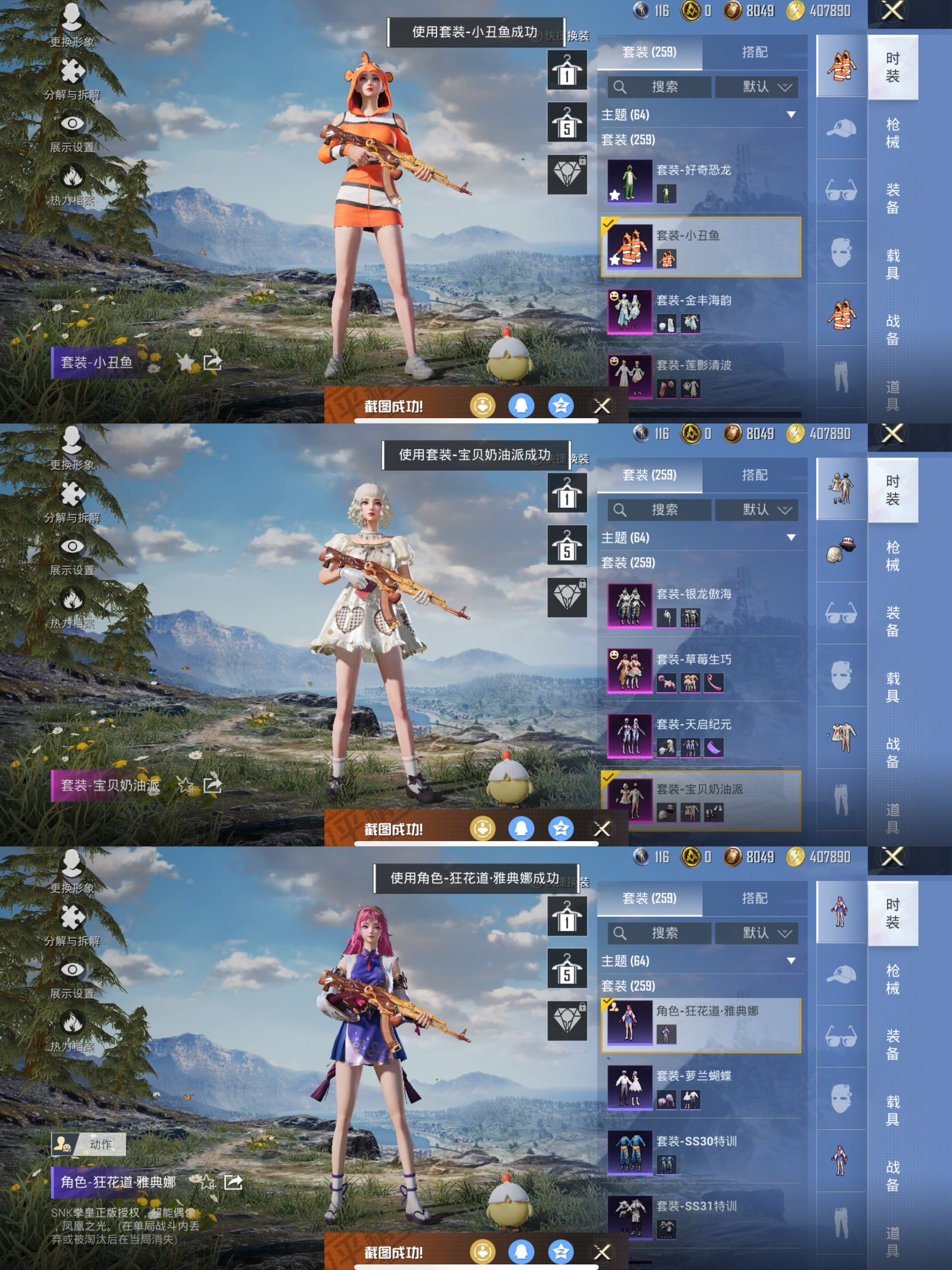 259套装333枪皮6粉装5特效 宝贝奶油派 暗影哥特 深海小丑鱼 都市猎人