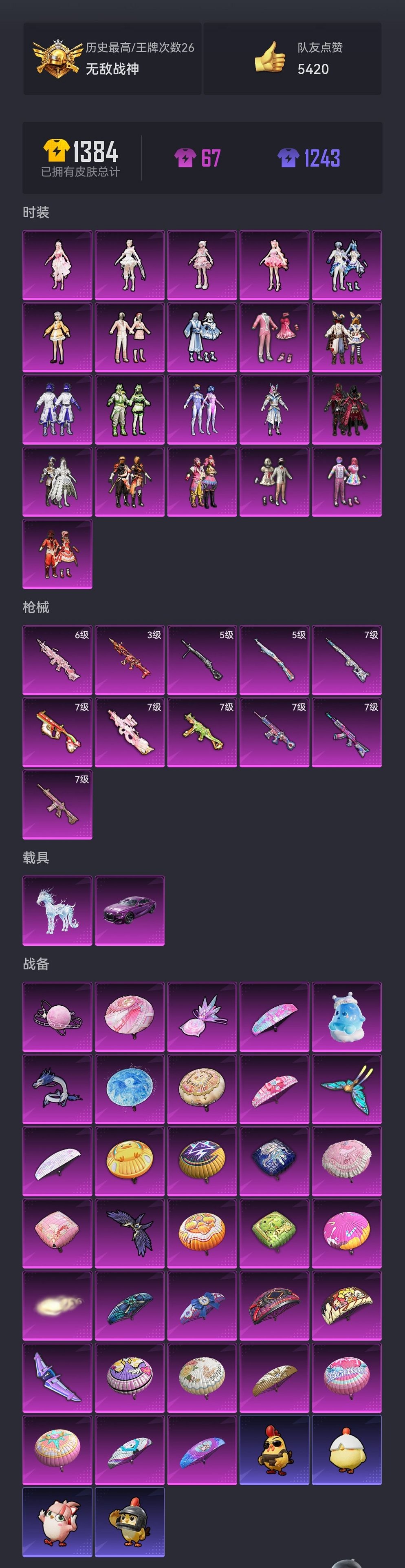 933-【战神框巡查衣金鞋都市男神小熊背包猫包21粉装11特效枪2载具身法素材号、秒换绑不用等】、苹果Q区-126260热力值-26印记-历史最高段位:无敌战神-276套装-360枪皮、【2载具】、宾利BATTUR(极速紫)、冰绡玉鳞【8稀有】、巡查衣、派对舞王、派对舞王(金靴子)、都市猎人、萌熊伴侣背包(小熊背包)、百万伏待背包(猫包)、AWM-黄金龙骨、AKM-百万伏特【21粉装】、梦幻火箭、宝贝奶油派、天使彩虹糖、缤纷油彩(猪脸妹)、童趣迷兔、冰霜白皇、傲雪凌霜、粉色回忆、绝对恒星、新星烈