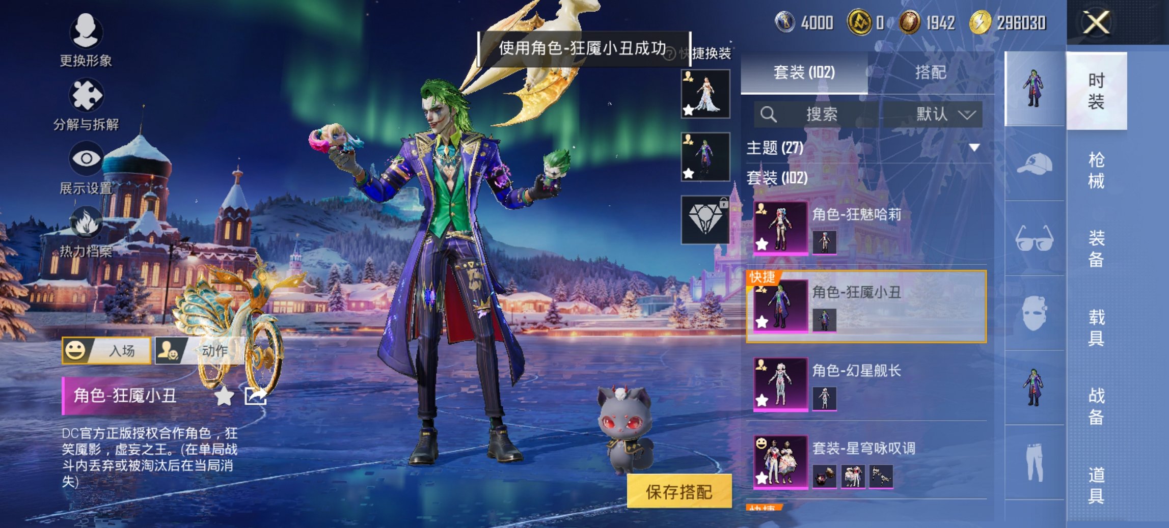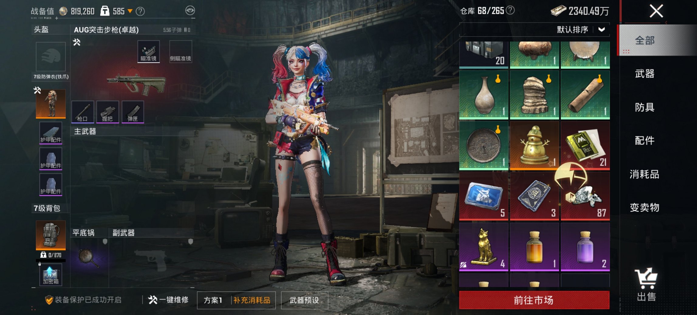265-【小丑女13特效枪8粉装2载具、秒换绑不用等】、安卓Q区-54342热力值-4印记-102套装-195枪皮、【2载具】僚机-圣域龙宝、辉羽雀灵自行车【1稀有】、Mark.06蓝螳螂【8粉装】、狂魅哈莉(小丑女)、狂魇小丑(新小丑)、天使彩虹糖、角色-玄冥寒域、角色-异瞳寒姬、角色-智耀战神、星穹咏叹调、角色-幻星舰长【13特效枪】、Kar98K-圣域龙灵(2级)、MG3-辉羽雀灵(3级)、Mk14-爆裂游戏(6级)、Mk14-樱桃泡泡(1级)、M762-青锋波束(5级)、AMR-智耀战神