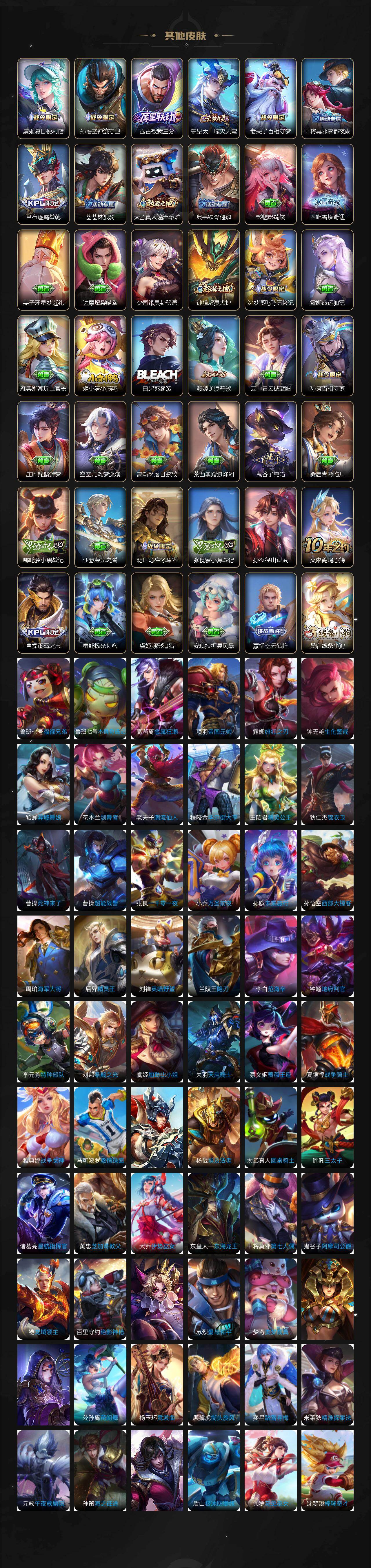 【英雄全皮】:刘禅全皮,元歌全皮,达摩全皮,刘邦全皮,孙权全皮,钟馗全皮,太乙真人全皮,猪八戒全皮,蒙恬全皮,空空儿全皮,影全皮