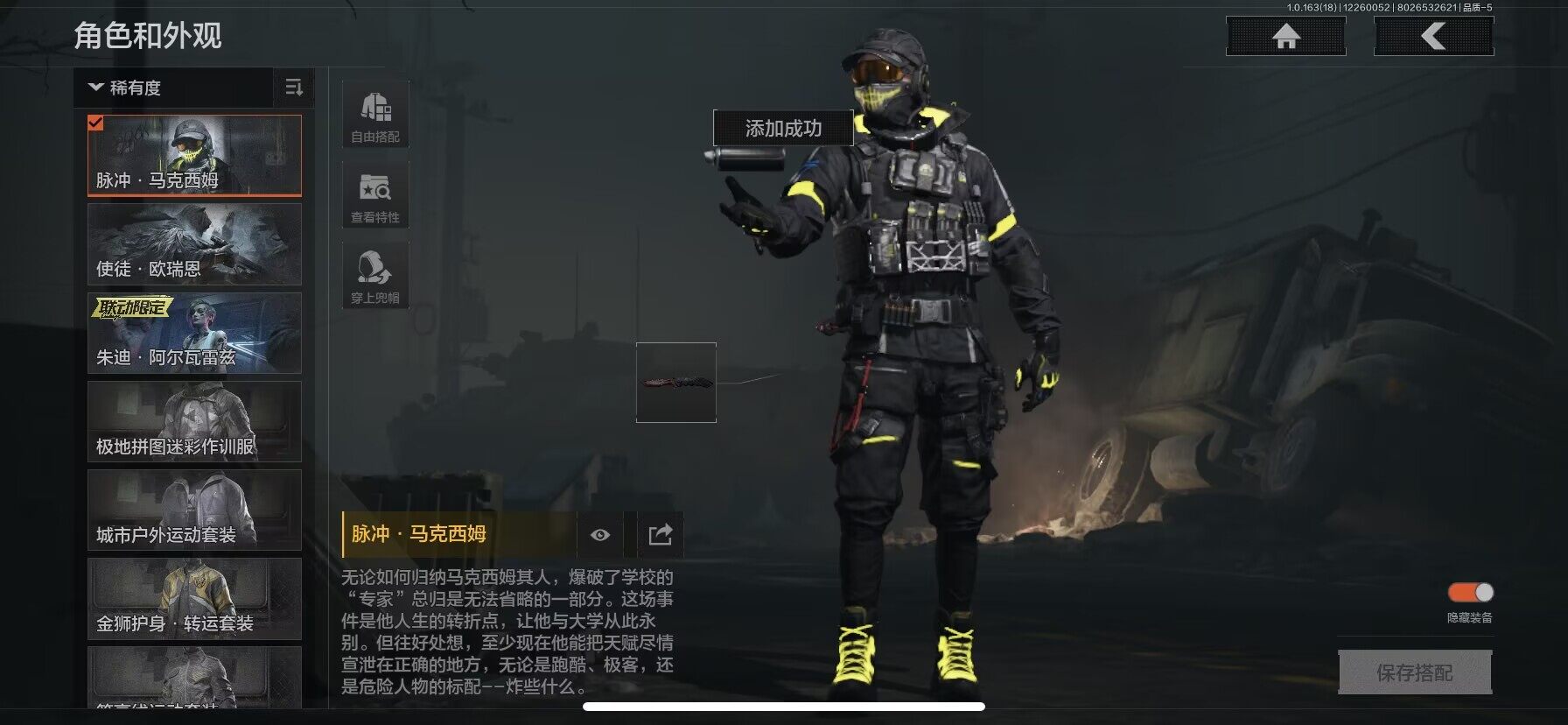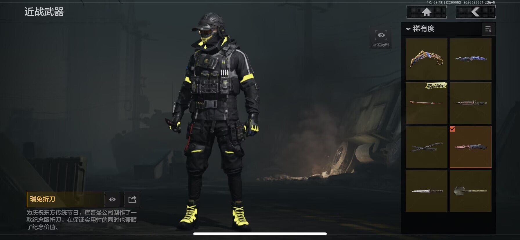 【AQQH134】段位:暗区传说/仓库价值(百万):15.2/战术甲胄防护手套/苍穹利爪/NOCs-7折刀/热能武器补牢/胜利军刀/明刀绣春/瑞兔折刀/突击匕首/工兵铲/脉冲马克西姆/使徒欧瑞恩/朱迪阿尔瓦雷兹