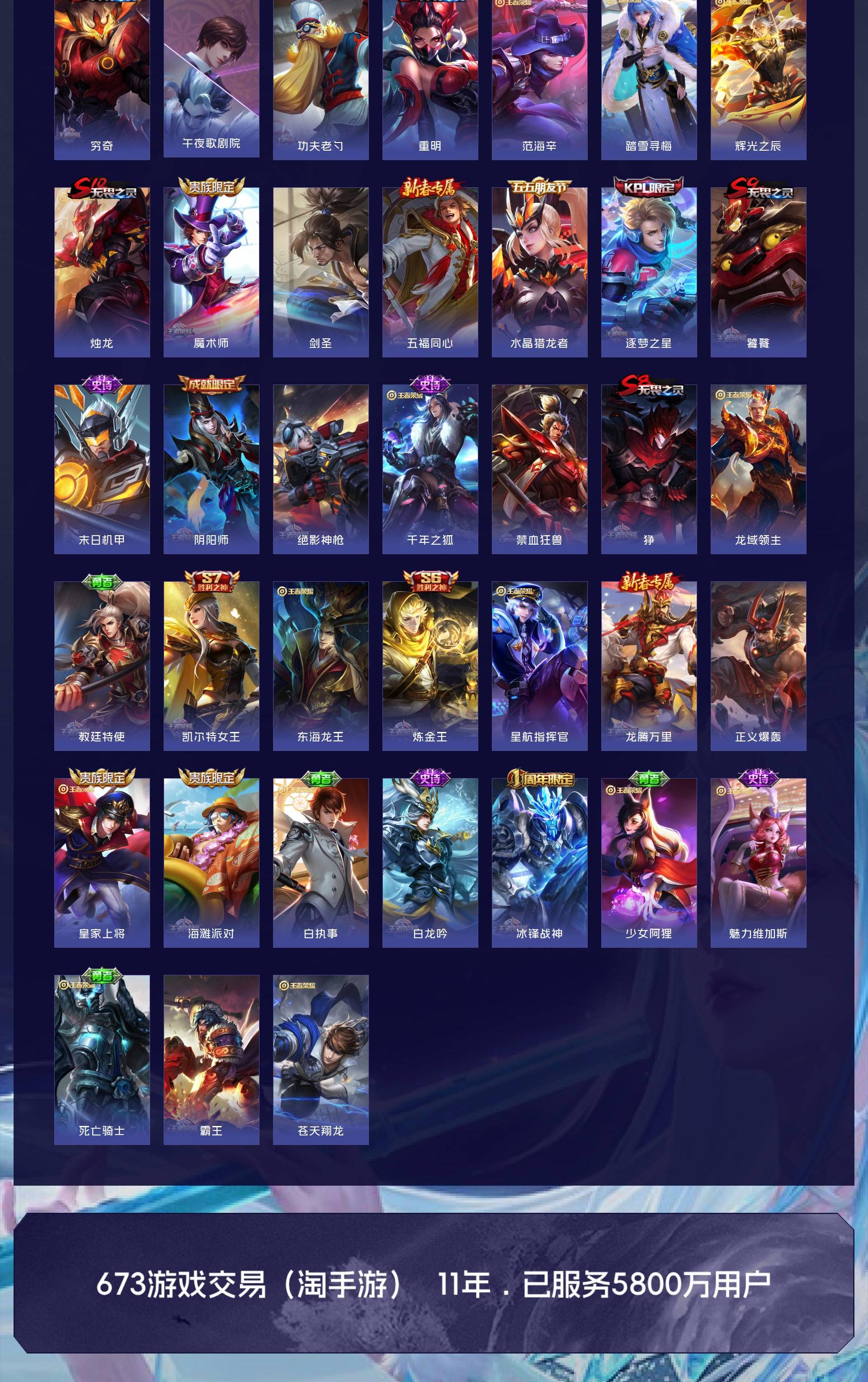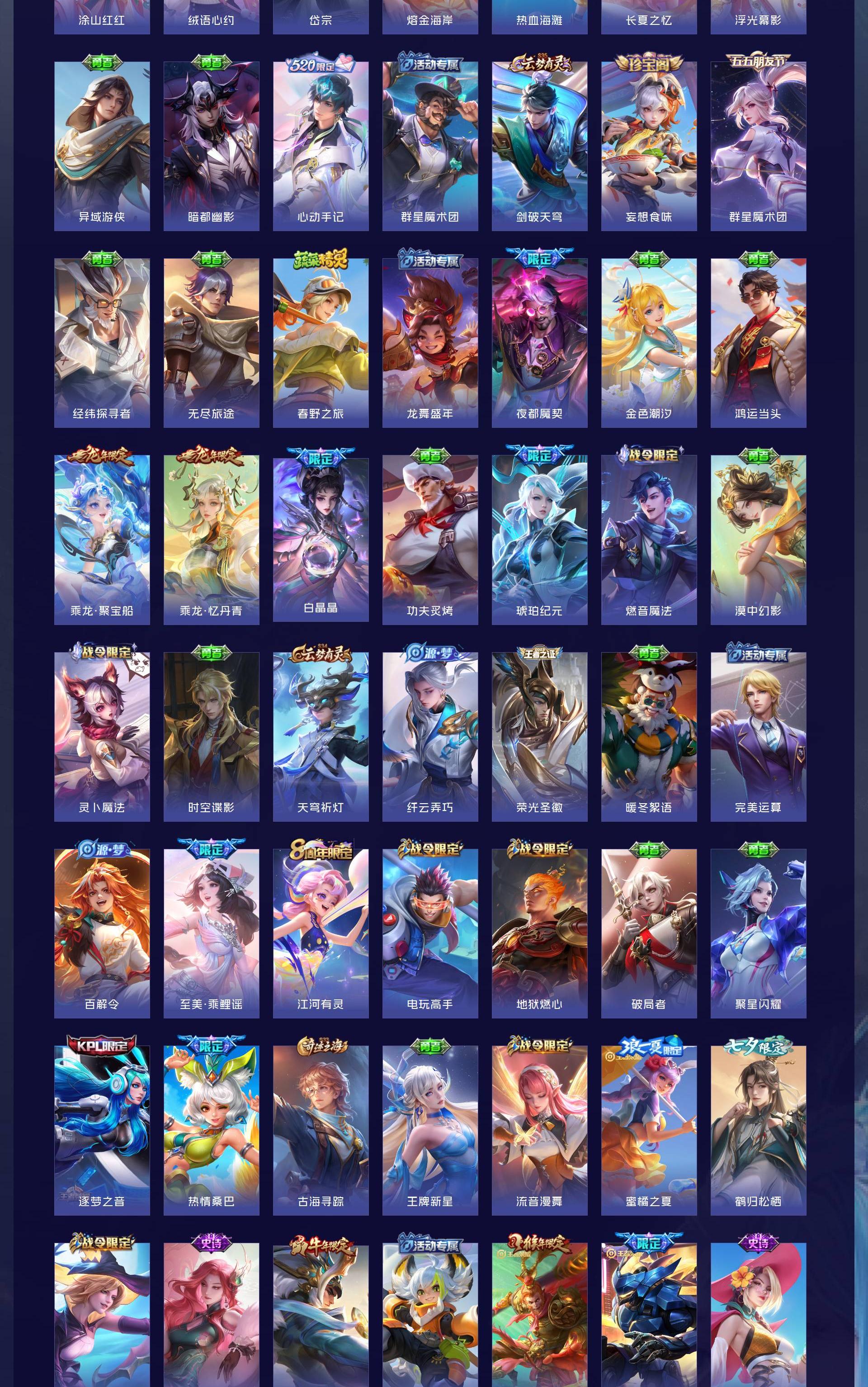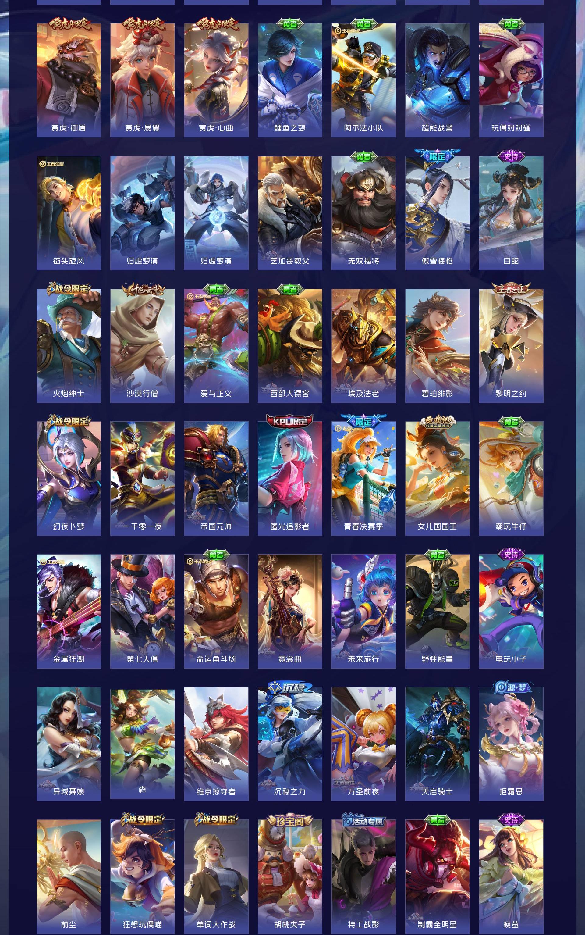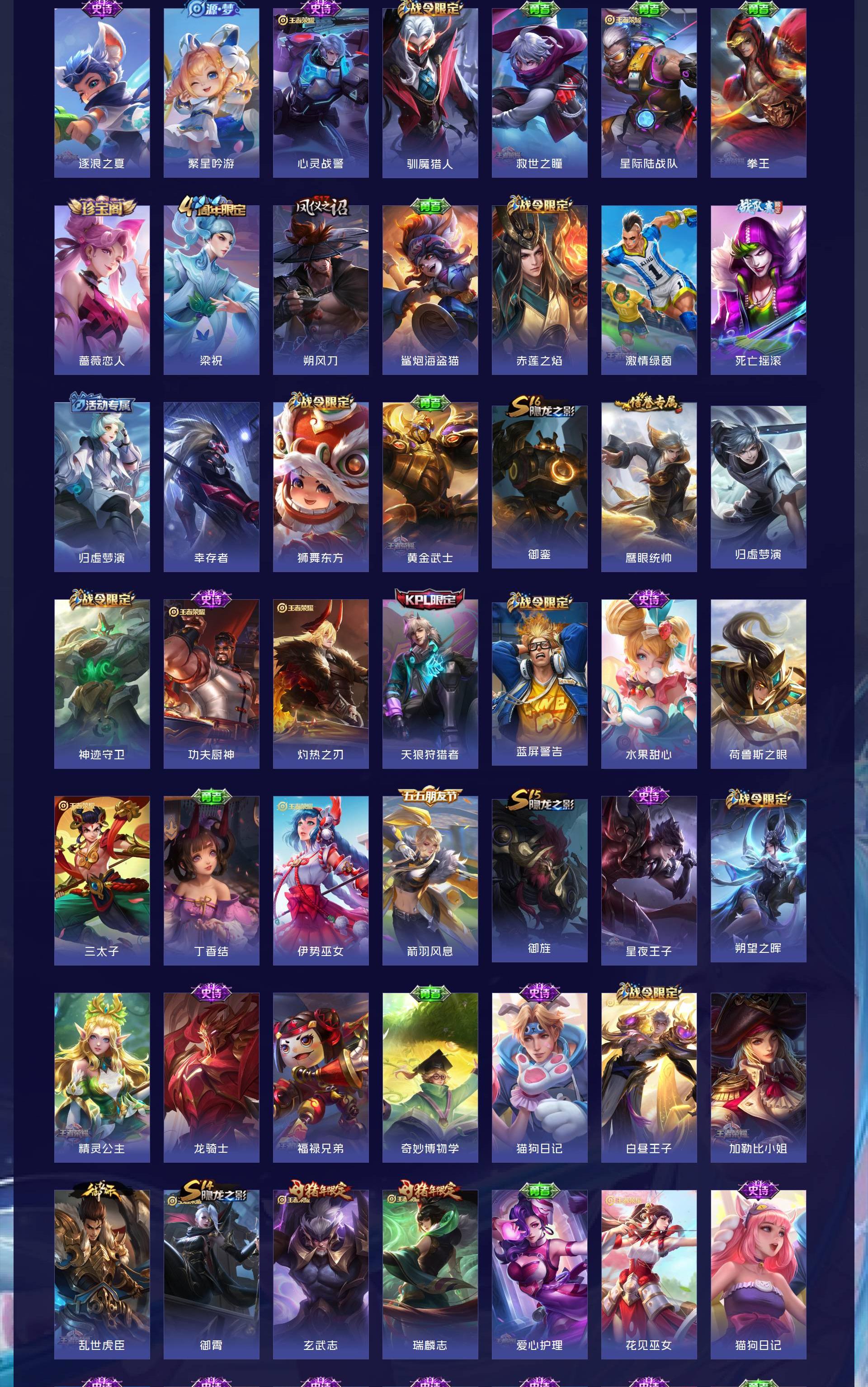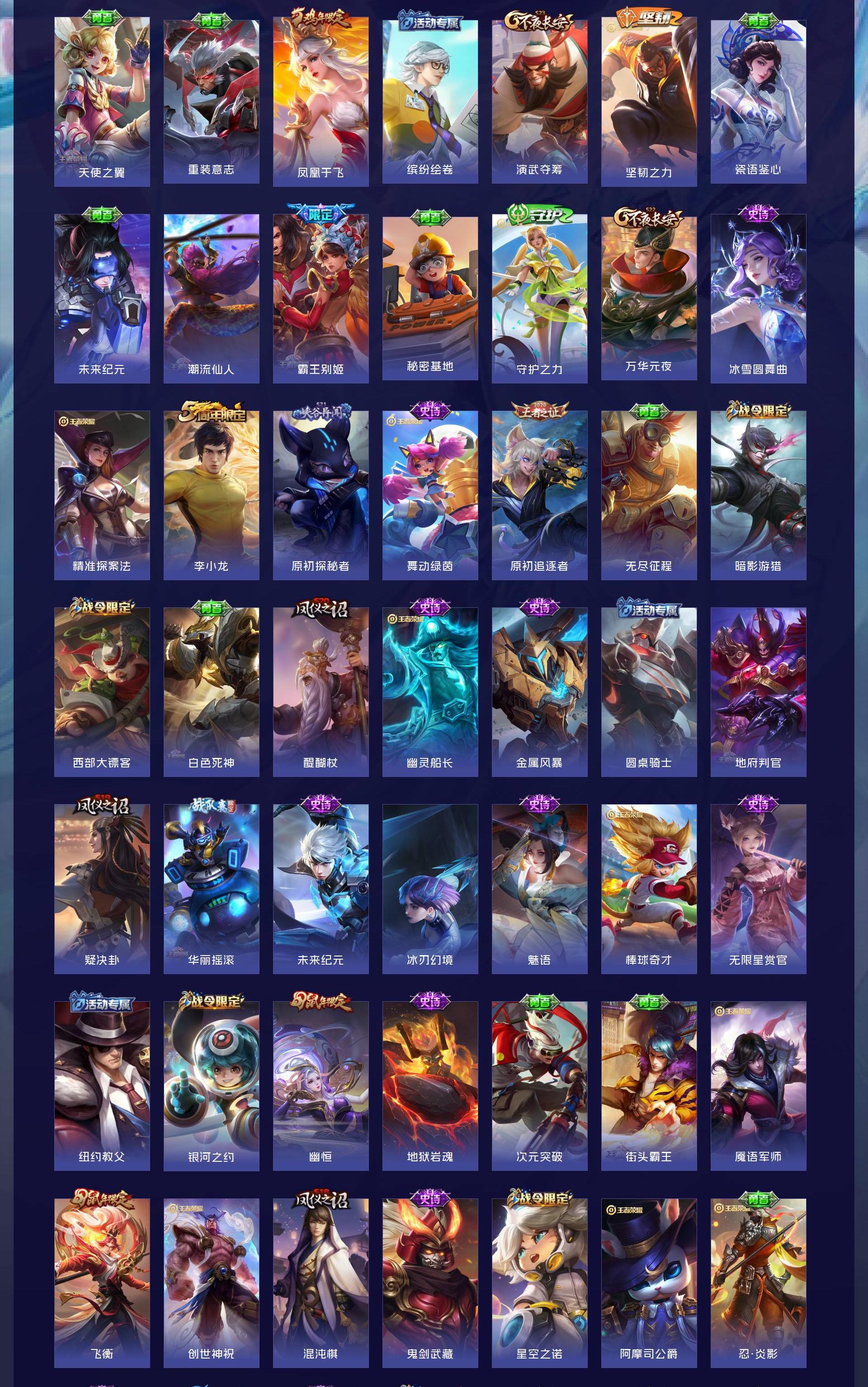 无双贵族 皮肤586 英雄129 至尊星耀 荣耀典藏9 无双皮肤8 珍品传说4 传说99 其他皮肤472