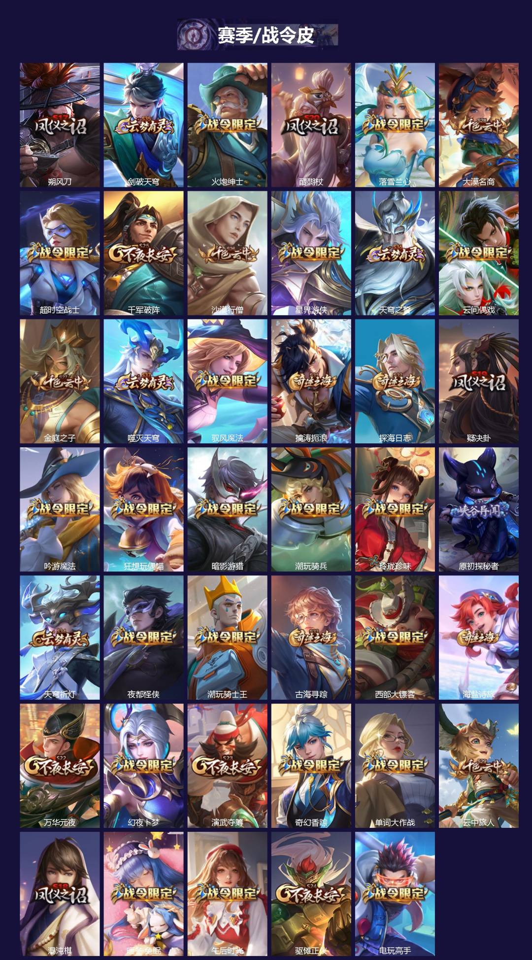 【传说皮】玄雷天君,幻光神枪,李逍遥,一念神魔,冠军飞将,云鹰飞将(小将军),超时空战士-狄仁杰,山海·苍雷引(电光曜子)