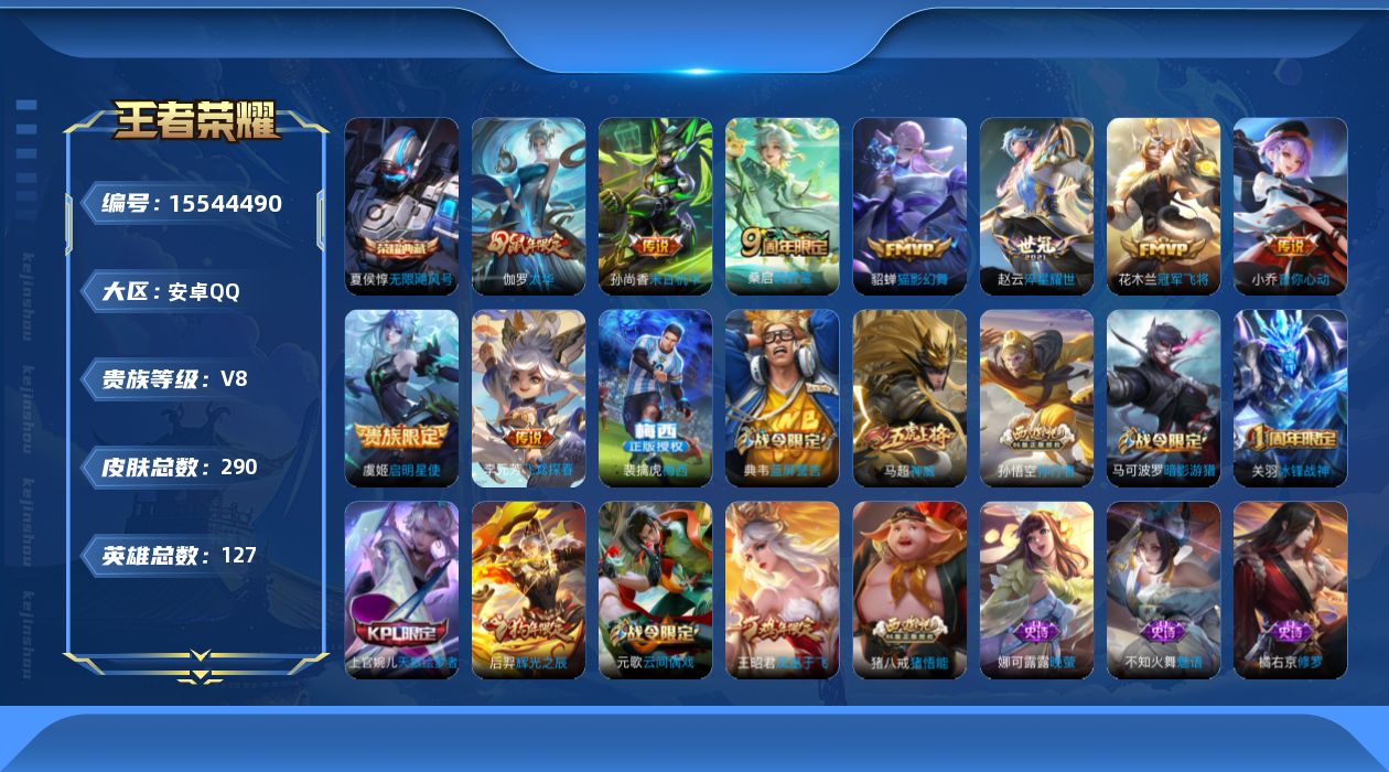 [15544490]V8 1典藏 10传说 127英雄 290皮肤 可修改实名
