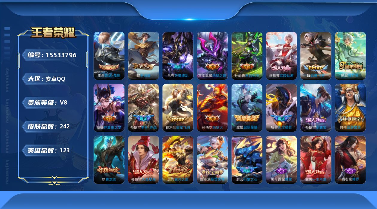 [15533796]V8 1典藏 13传说 123英雄 242皮肤 可修改实名