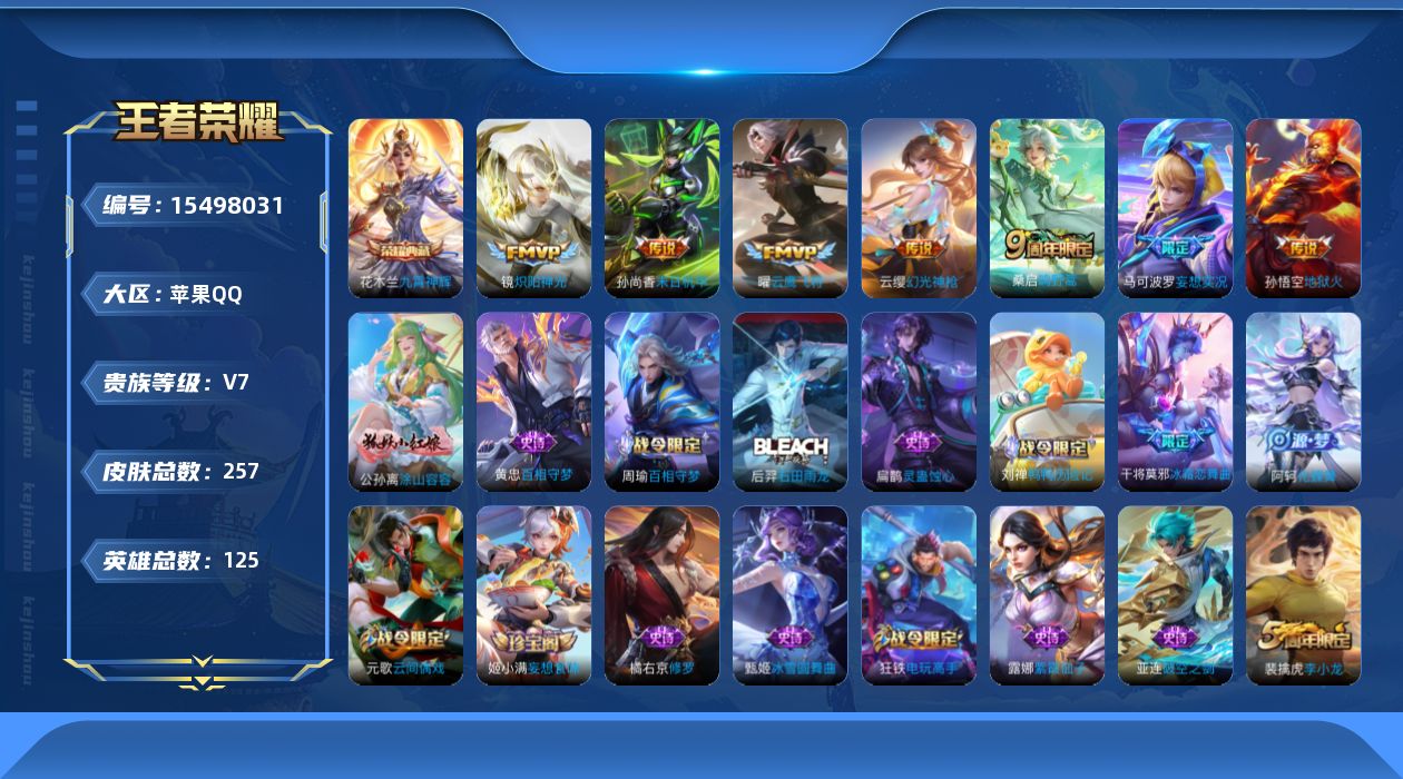 V7 1典藏 8传说 125英雄 257皮肤 可修改实名 【稀有英雄】大司命,