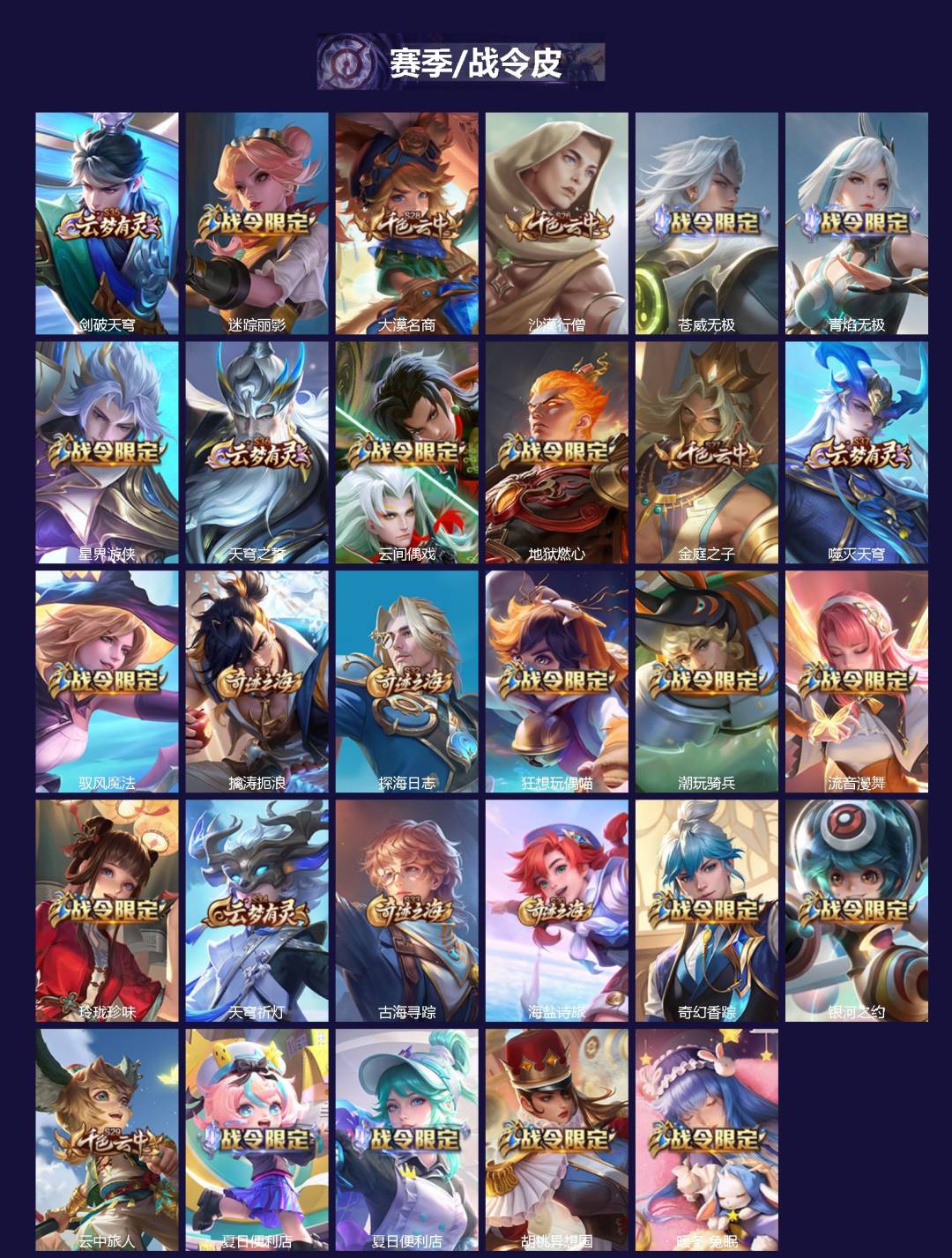 【传说皮】纵目迁山,乘龙·问璇玑(孙尚香年限),乘龙·铭钟鼎(赵云年限),乘龙·淬吴钩(孙策年限),神树通天,幻光神枪,地狱火
