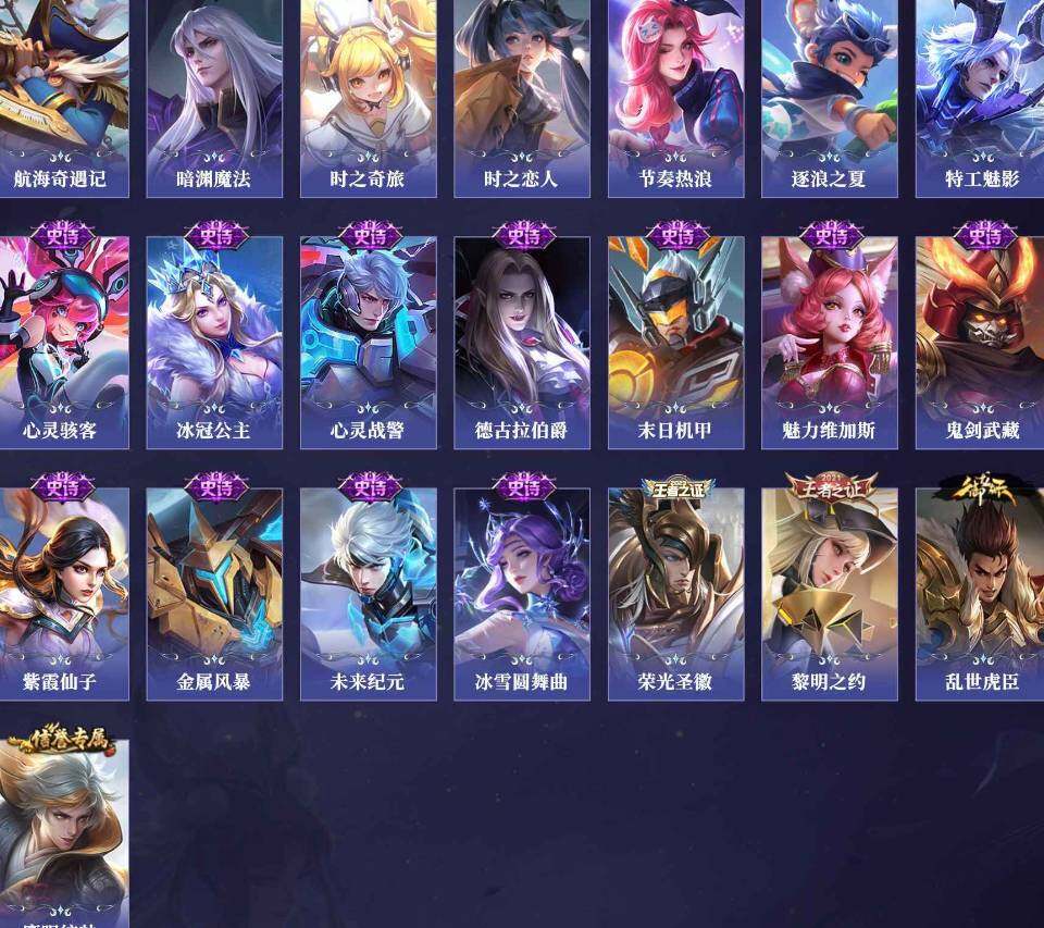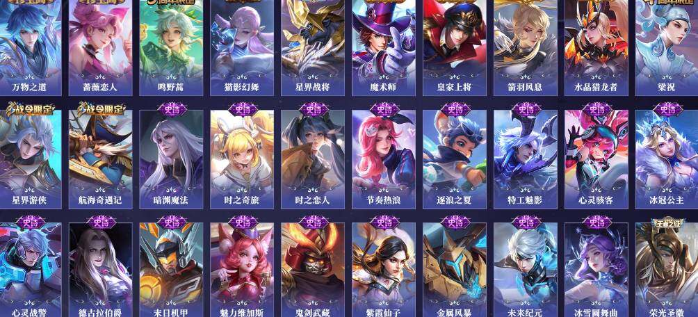 【限定皮肤】:姜子牙天穹之誓,狄仁杰阴阳师,赵云皇家上将,墨子神迹守卫,孙尚香蔷薇恋人,狄仁杰魔术师,狄仁杰万华元夜,达摩沙漠行僧,项羽海滩派对,老夫子航海奇遇记,程咬金演武夺筹,兰陵王金庭之子,李元芳云中旅人,钟馗驱傩正仪,雅典娜黎明之约,鬼谷子原初