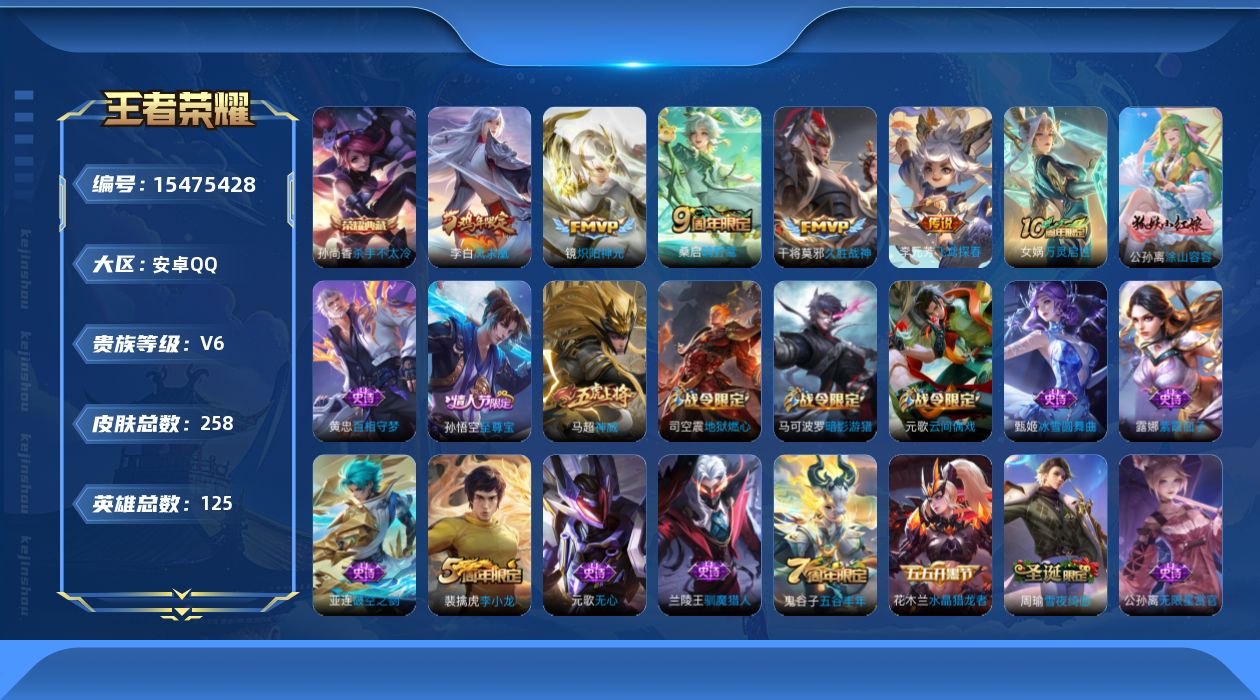 [15475428]V6 1典藏 6传说 125英雄 258皮肤 可修改实名