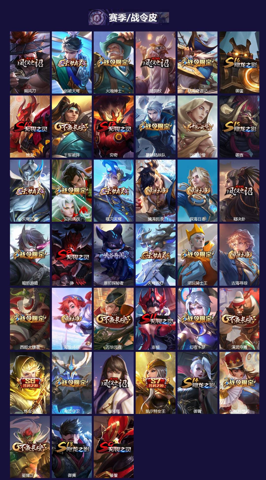 【赛季/战令皮】噬灭天穹(s37),古海寻踪(s33),海盐诗旅(s30),擒涛扼浪(s31),探海日志
