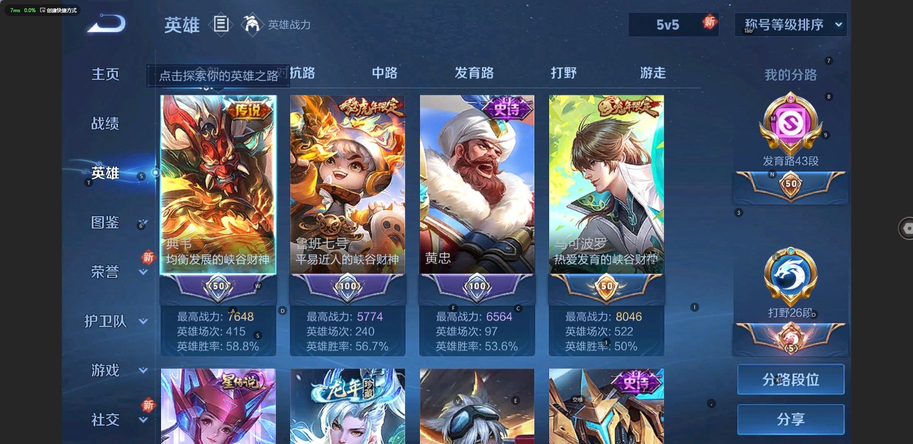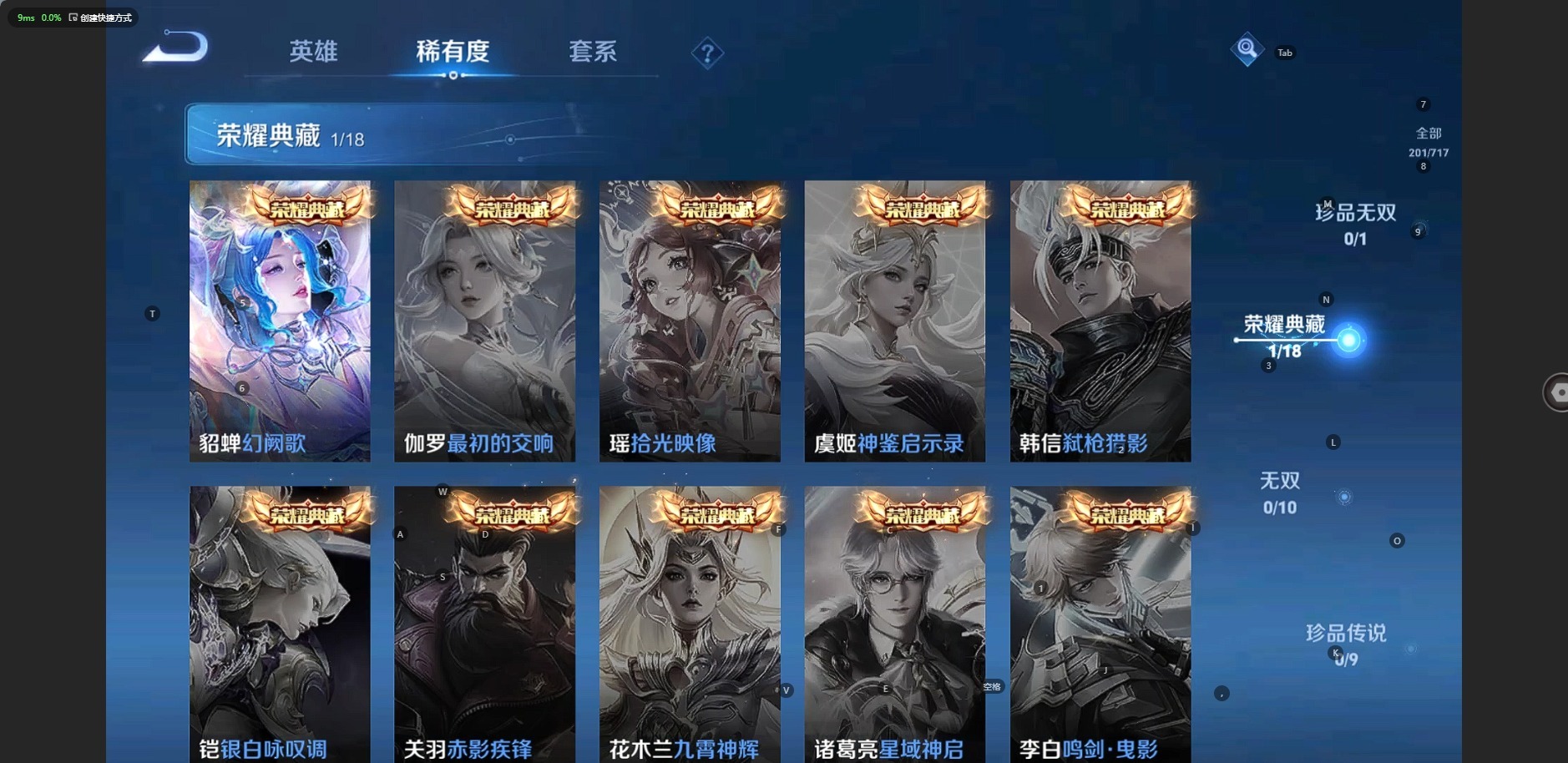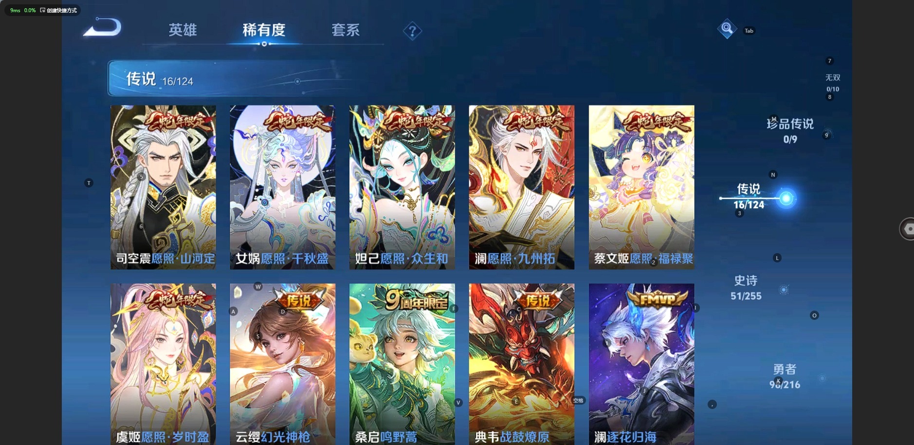 V7 1典藏 16传说 124英雄 201皮肤 可修改实名 【英雄全皮】敖隐全